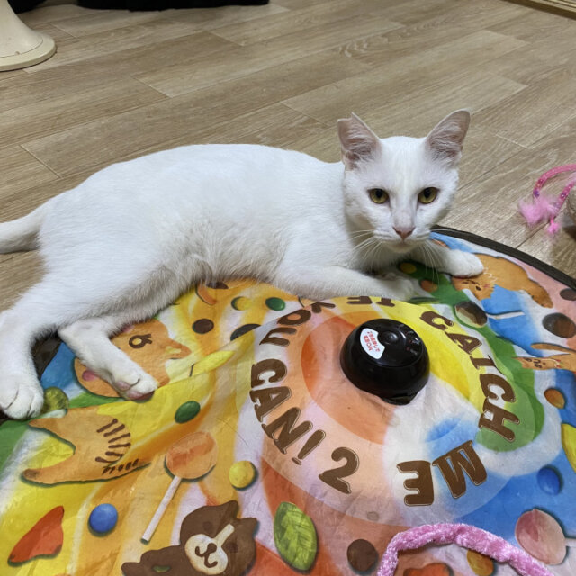 よく食べ元気で猫オモチャが大好き