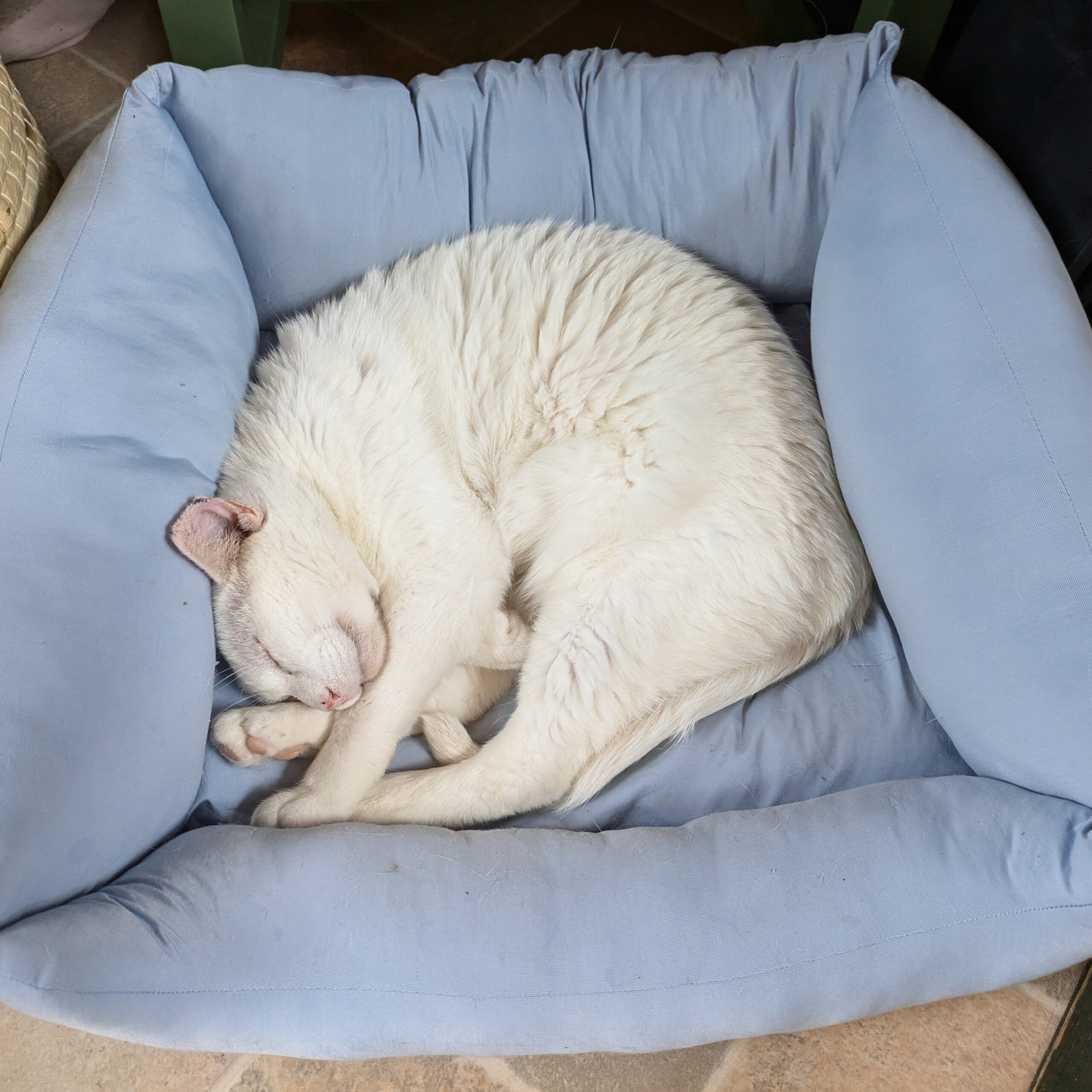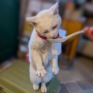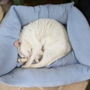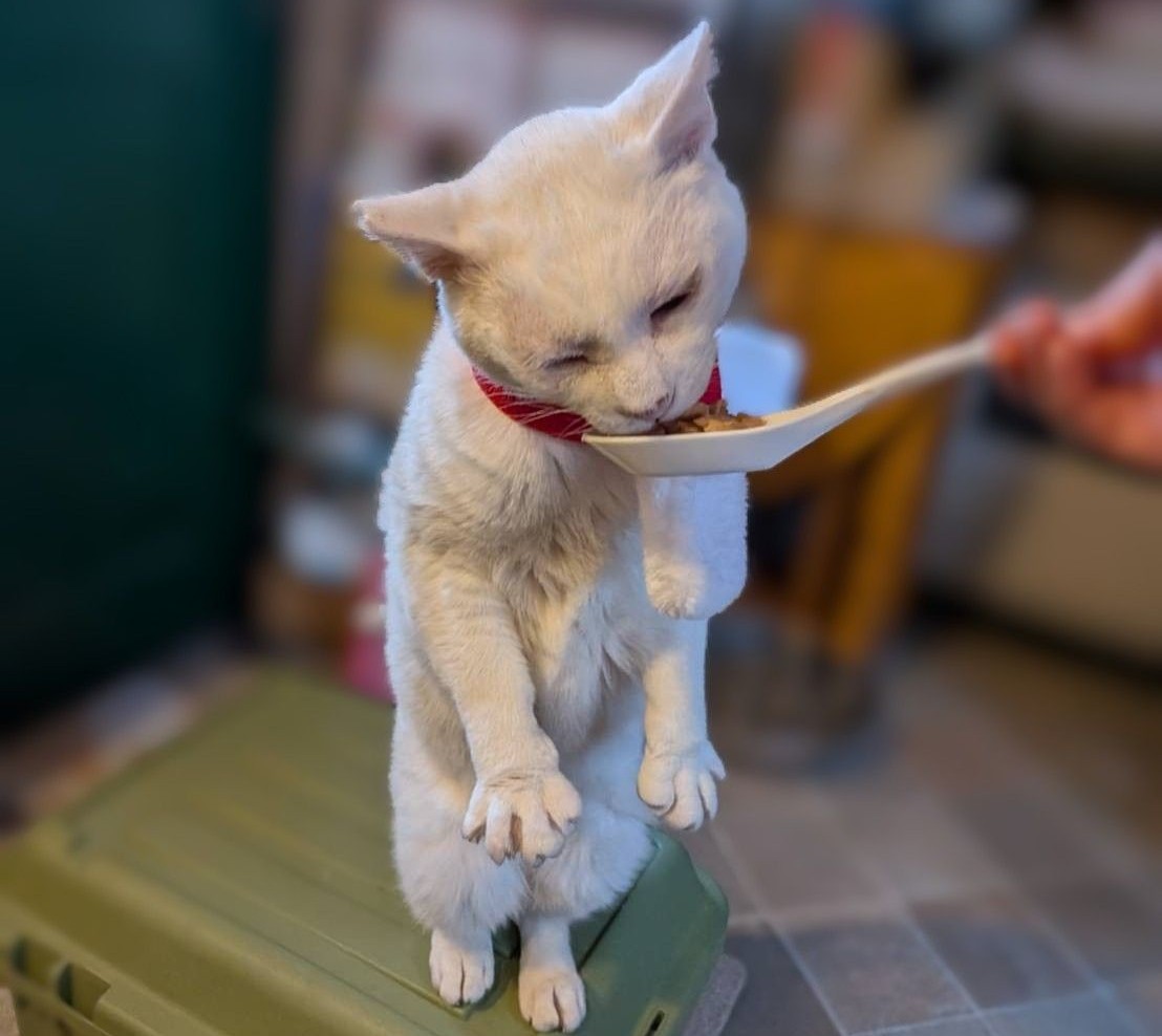 ・白猫によくあるようですが耳が遠めです。他猫と比べ音への反応が鈍く声が大きいです。聞こえてはおりオヤツやダメなどの言葉は覚えています