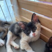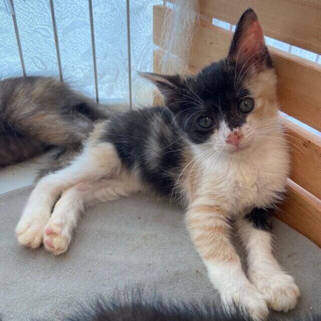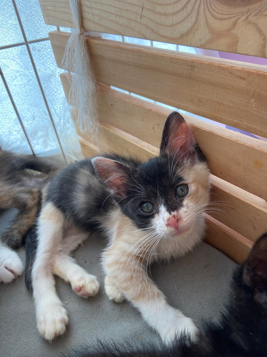 パステル三毛のととちゃんは元気いっぱいで同じケージにいる子猫達とよくじゃれあって遊んだり疲れて寝たり子猫らしいといった感じでずっと見ていられる可愛さです。