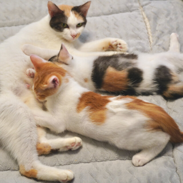 | 種類(?種/猫種) | 雑種(薄三毛女の子と茶白男の子) |