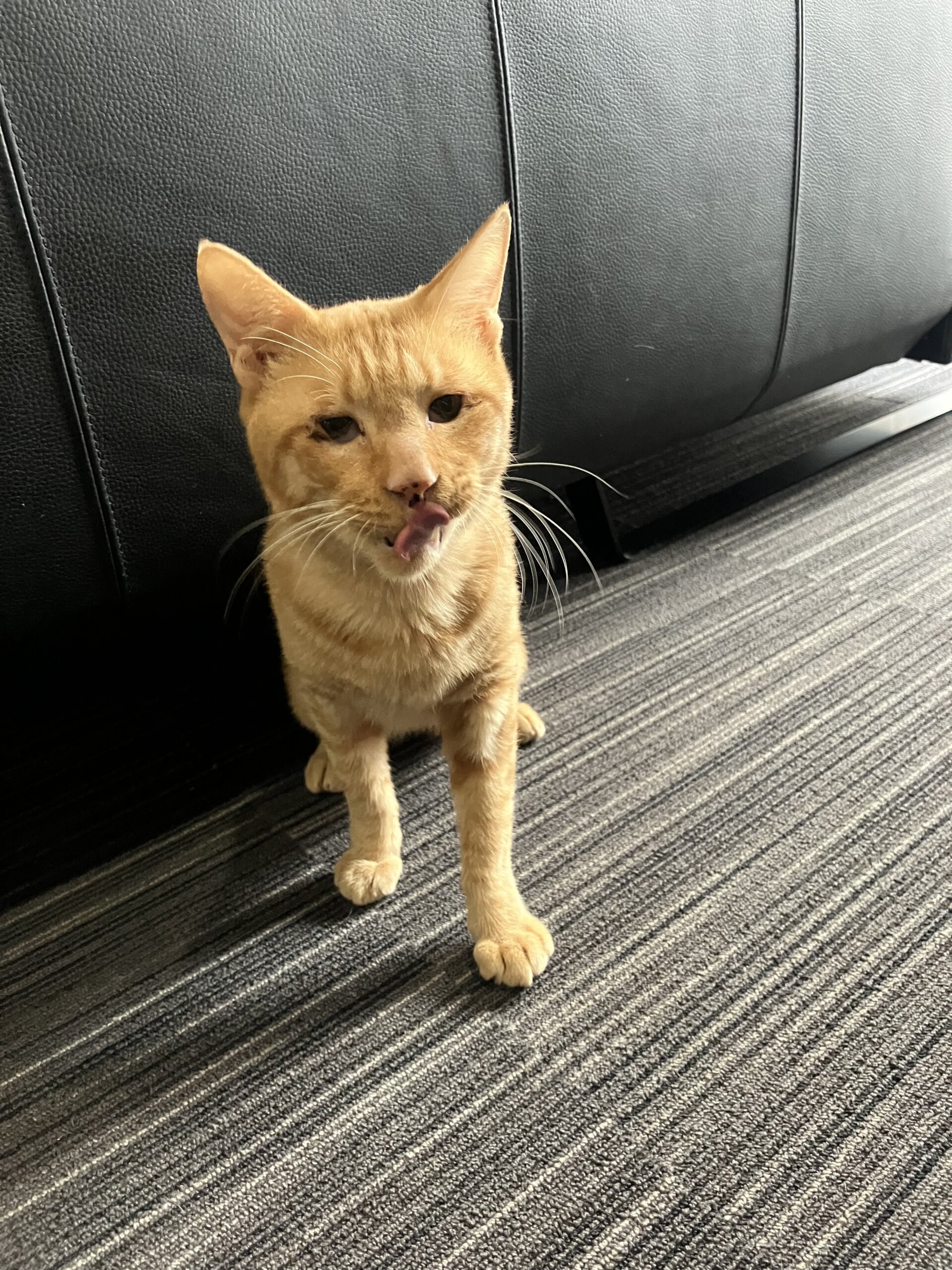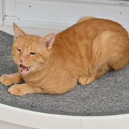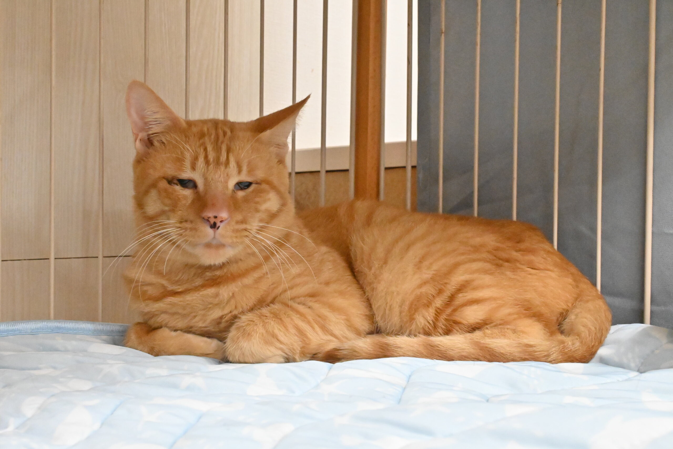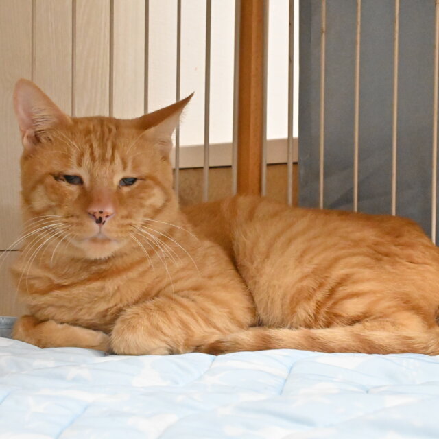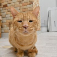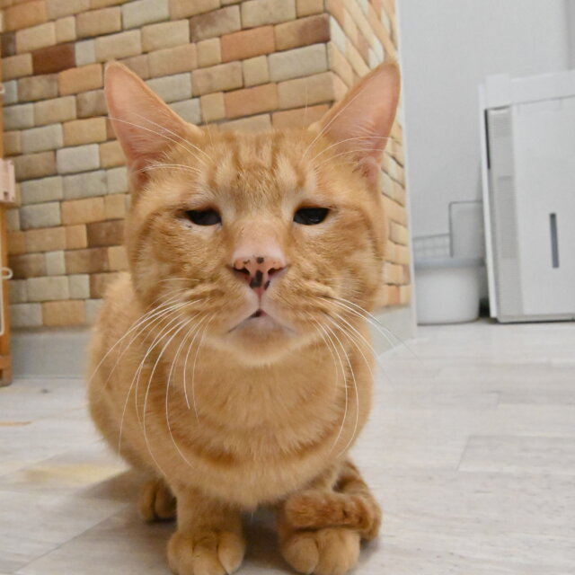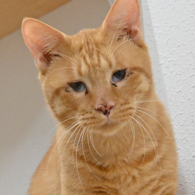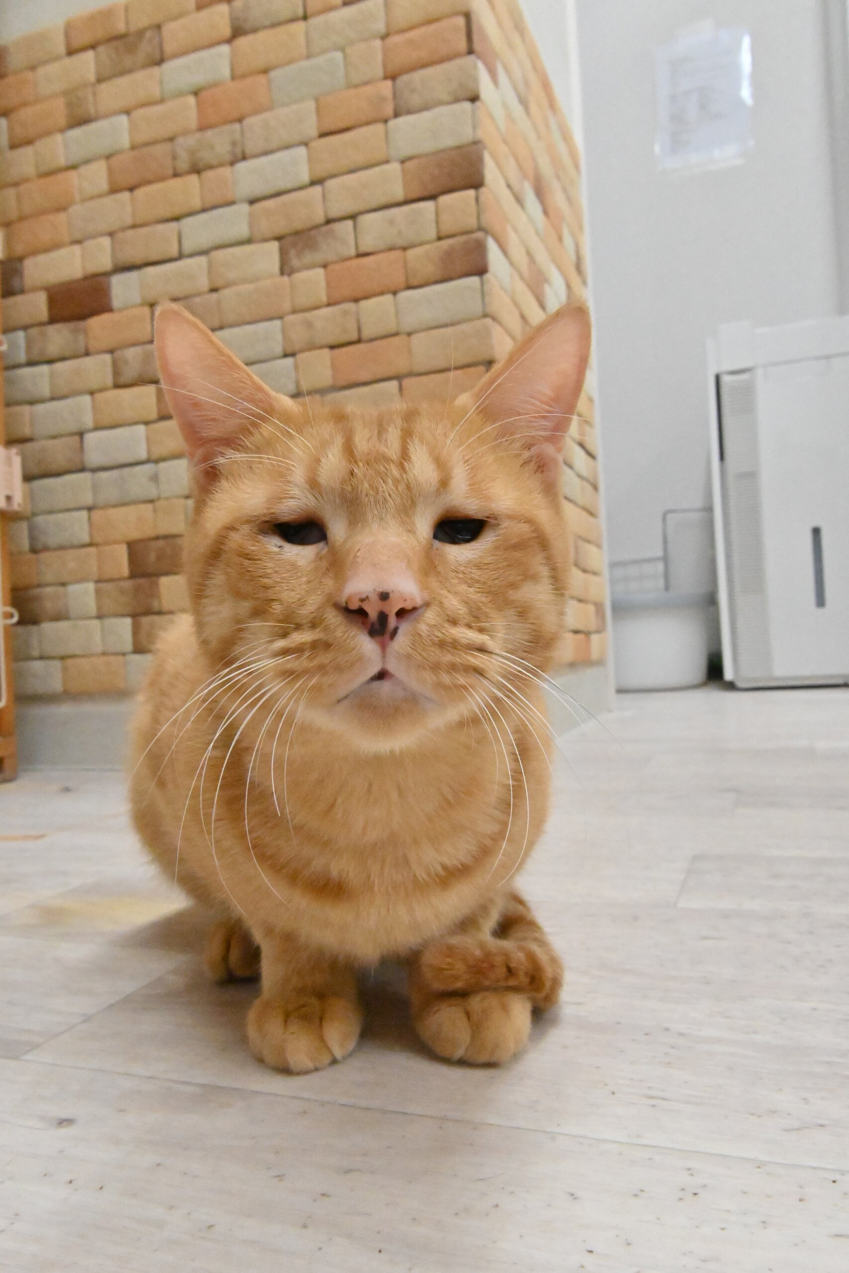 おとなしそうに見えますが、実は結構やんちゃ。仲間と大喧嘩して怒られることもあります。でも本当は甘えん坊で、撫でられると眠っていてもゴロゴロ。そして何よりも食べるのが好き。自分のおやつを食べ終えると、ほかの子のお皿に割り込んでちゃっかり2杯分食べている、超食いしん坊な愛嬌者です。