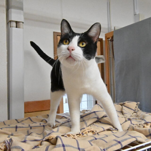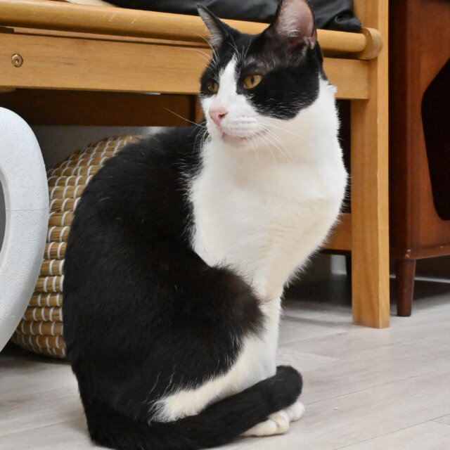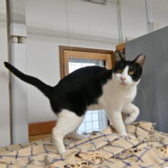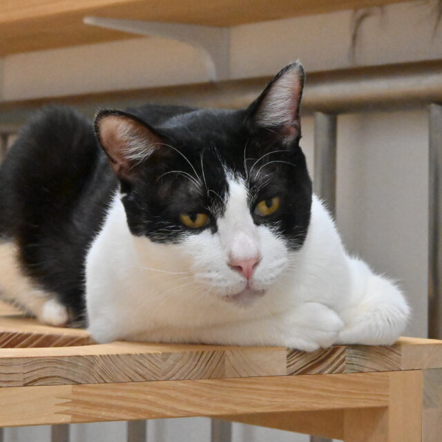 シェルターのお客様に撫でてもらっても、他の猫たちからちょっかいを出されても、「我関せず」と悠然と寝ている、超マイペースな大物です。