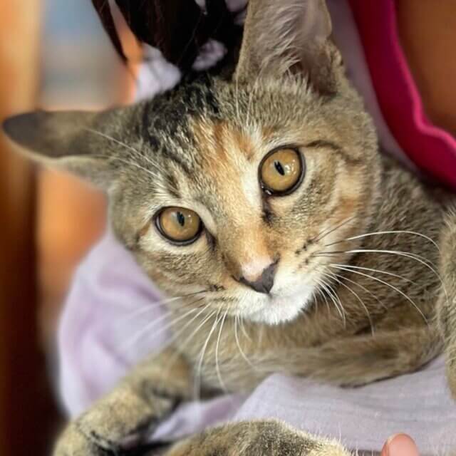 車を運転中に、道で1匹ポツンとたたずんでいる生後1ヶ月半くらいのミミちゃんを見つけました。そのまま家に連れて帰り先住猫とミミちゃんと2ヶ月ほど同じ屋根の下で共に暮らしてきましたが、