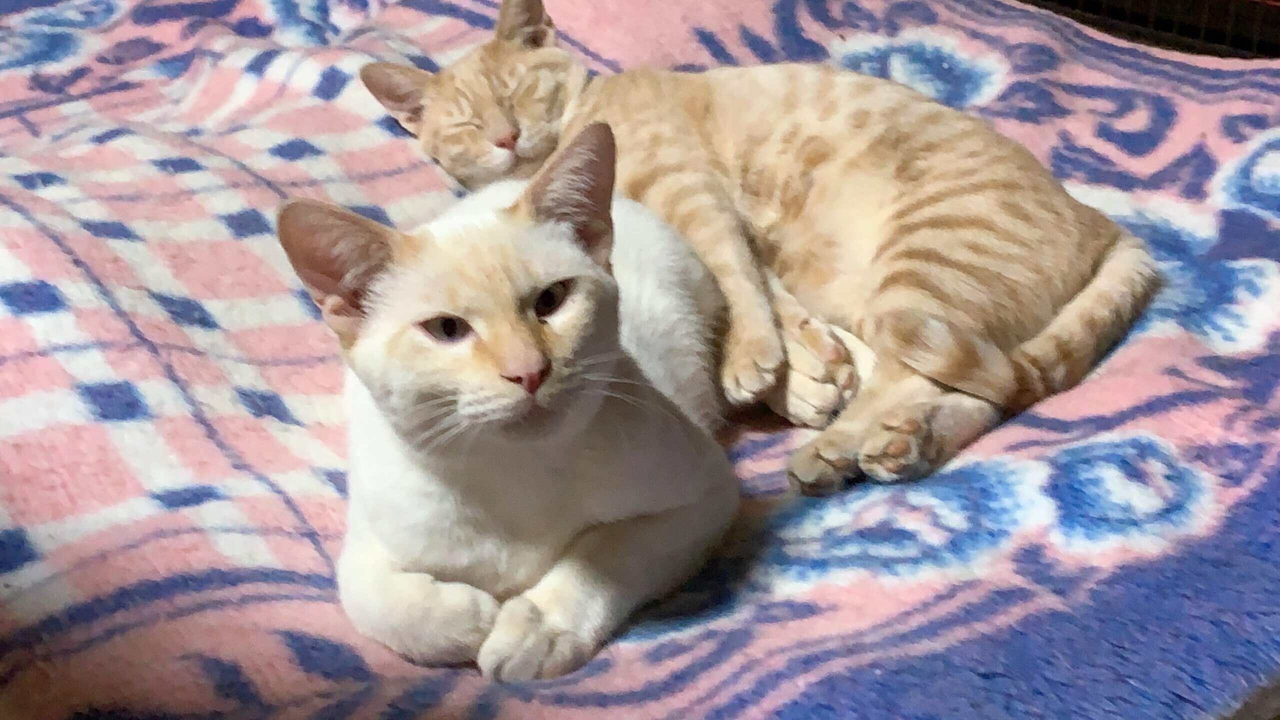 珍しいクリームブラウンのシャムミックス の男の子です。
