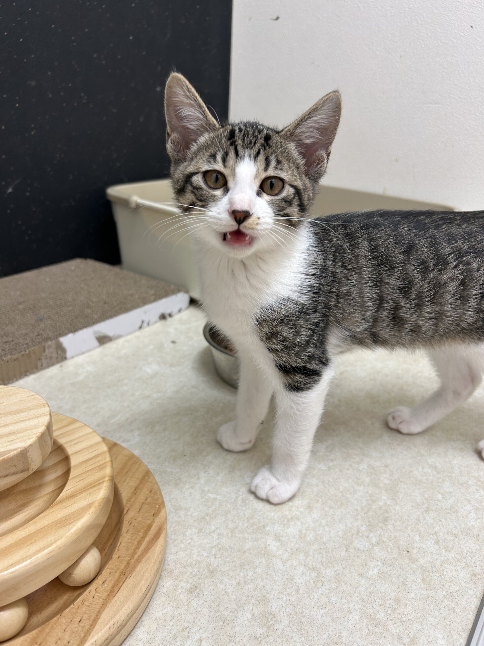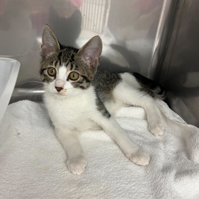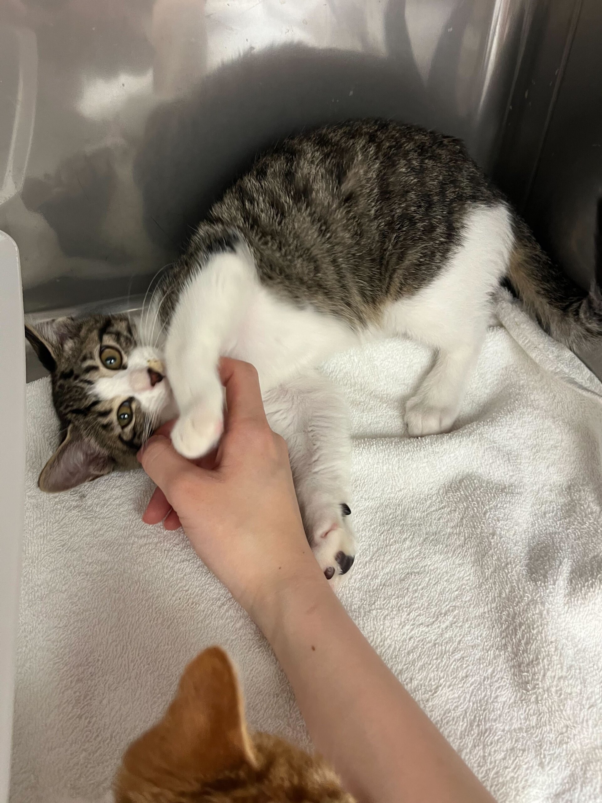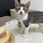 現在は子猫部屋で他の子猫たちと一緒に過ごしています。元気に遊んでいます!