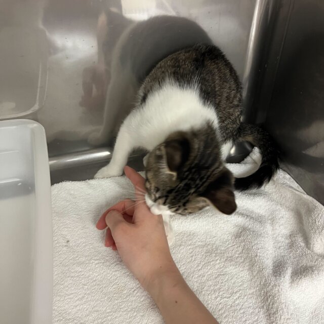 ※引き渡し場所について:ねこの森富士見台どうぶつ病院での引き渡しとなります。病院スタッフのみで運営しているため、ご自宅への猫ちゃんのお届けは行っておりません。病院にて猫ちゃんの性格や日頃の様子を詳しくお話しいたしますので、ぜひお越しください。