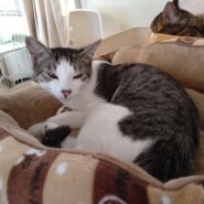 びびりなほっけくんだけど本当は甘えん坊。触ることも抱っこもできます。遊ぶこともちゅーるも大好き!一緒に育ったたいやきくんと仲良し。