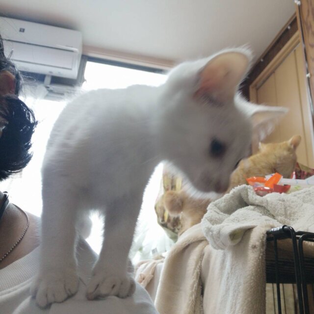 <譲渡の大まかな流れ> ① 応募条件に相違がないか、質問等受付(メールまたは電話でのやりとりになります) ② お見合い(保護主宅へ猫を見にきていただきます) ③ 飼育環境の確認(譲渡主宅へ伺います) ④ お見合い/トライアル譲渡開始(譲渡主宅へお届けにあがります) ⑤ トライアル期間終了後、双方合意した場合完全譲渡(トライアル期間は猫によって設定させていただきます) 以下、猫ちゃんが終生幸せに暮らすためにご理解のほどお願いいたします。 ・飼育環境が脱走しやすい環境などの場合、脱走防止策の提案も行います。脱走防止策設置完了後に再度確認させていただく場合がございます。脱走防止策が設置されない場合は譲渡を見送らせていただきます。 ・先住猫や、ほかの動物とそりが合わないこともありますのでその場合は譲渡を見送る場合がございます。 ・譲渡の流れにつきましては、猫の性格や状況に応じて上記と多少異なる場合がございます。 同時期に保護した黒子猫とペア単位での譲渡希望。