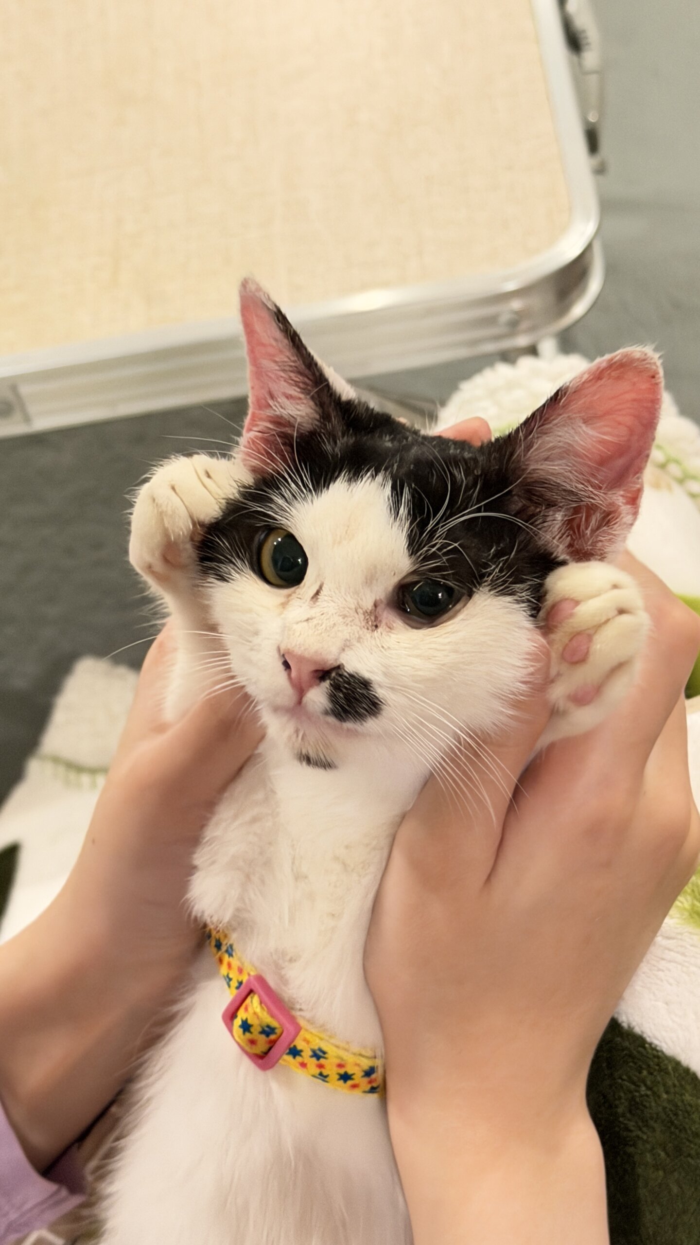 保護してまだ2週間程で、現時点で家で出来ることは全て行いました。蚤取り薬投与、毛を切って皮膚薬の塗布、目薬、シャンプー、爪切り です。