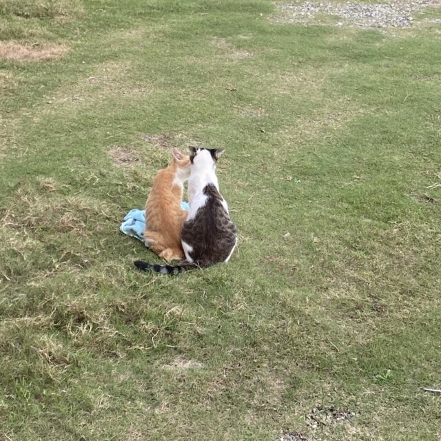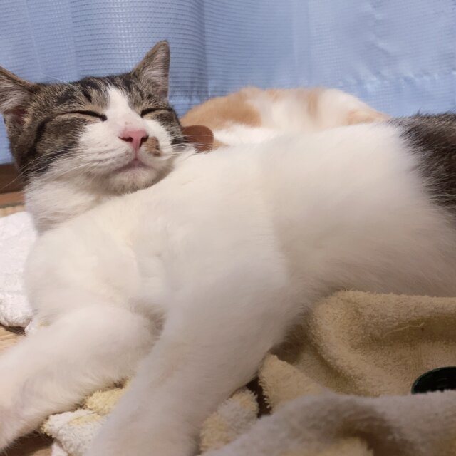 面倒見がよく、兄弟達の毛繕いをよくしてあげてます♡人間には甘えん坊な性格で高い声で喋りながらスリスリしてくれます。最近は頭突きの挨拶もしてくれるようになりました✨