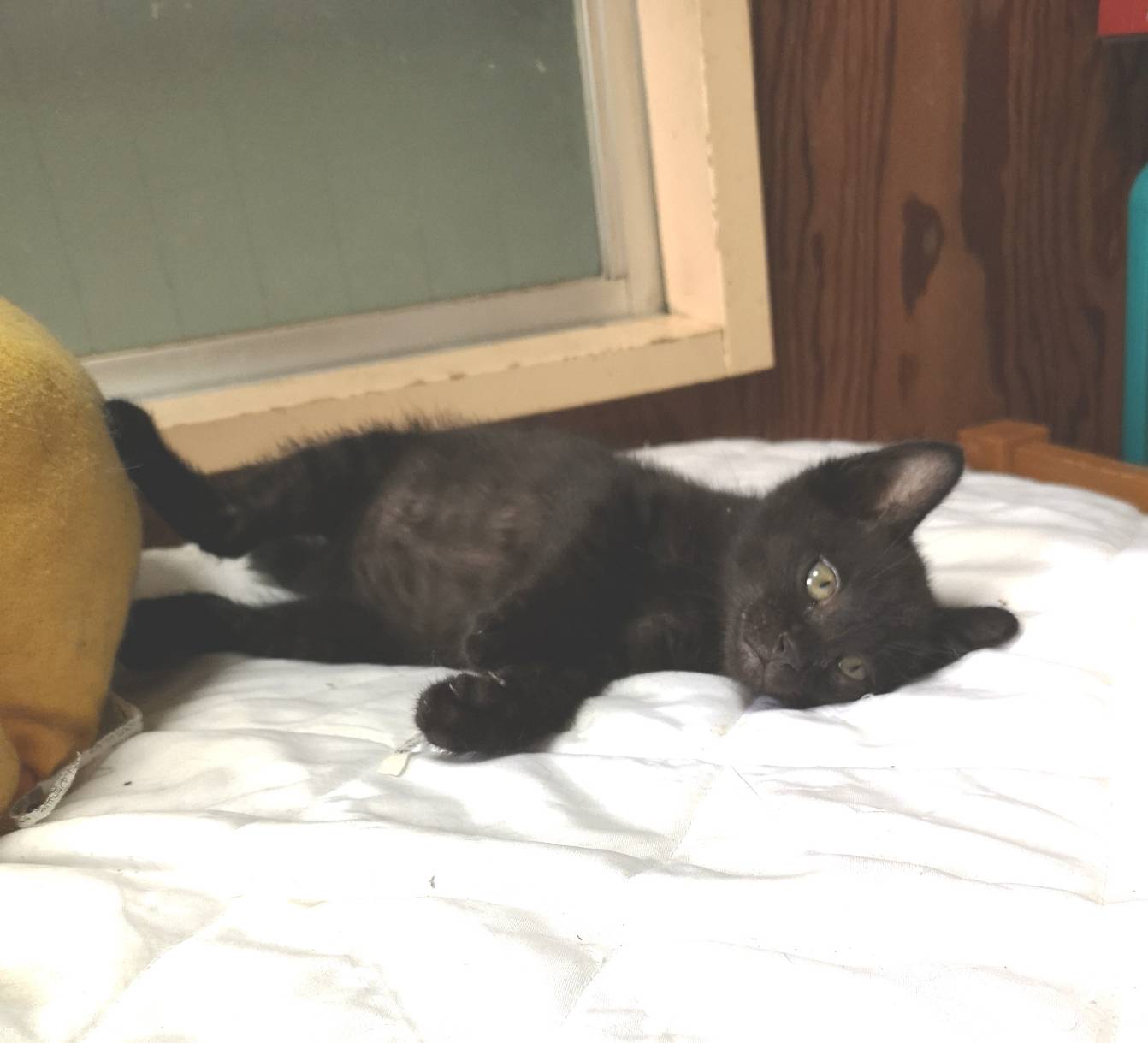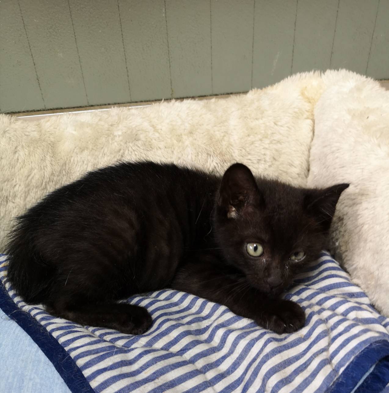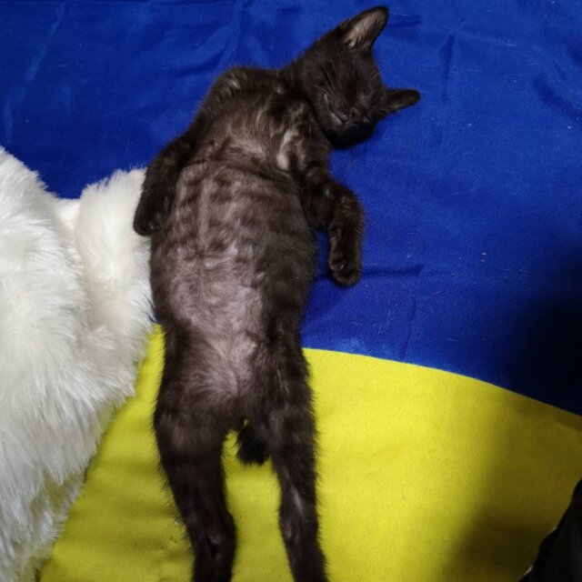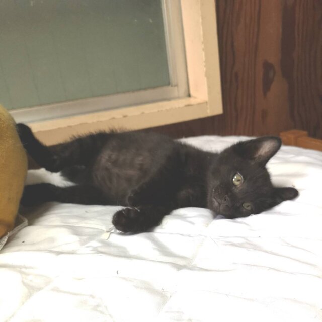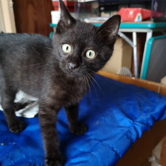 隣接区の老夫婦の車のエンジンルームに入り込んだ子猫の保護依頼があり保護して里親探しをすることにした。保護直後、頭に傷があったため通院検査をし傷の為貧血があったが、投薬にて完治した。食欲旺盛。