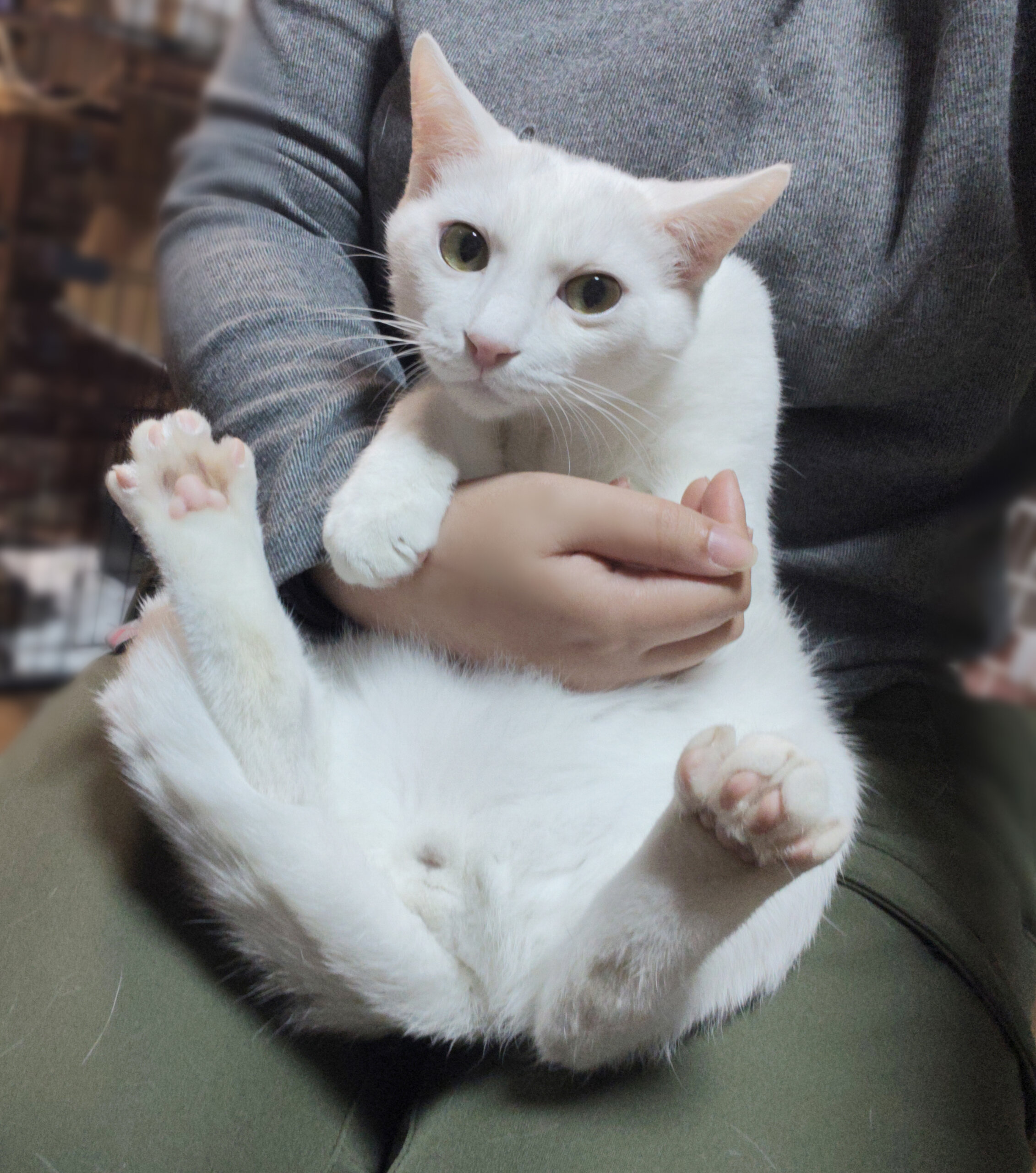 近づいた時にシャーの洗礼を受けますが、抱っこやナデナデは問題なくできますし、ゴロゴロもいいます。