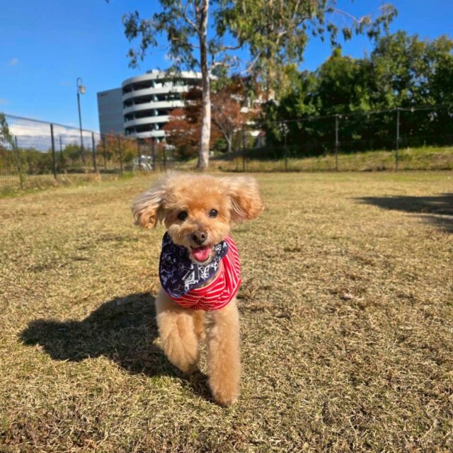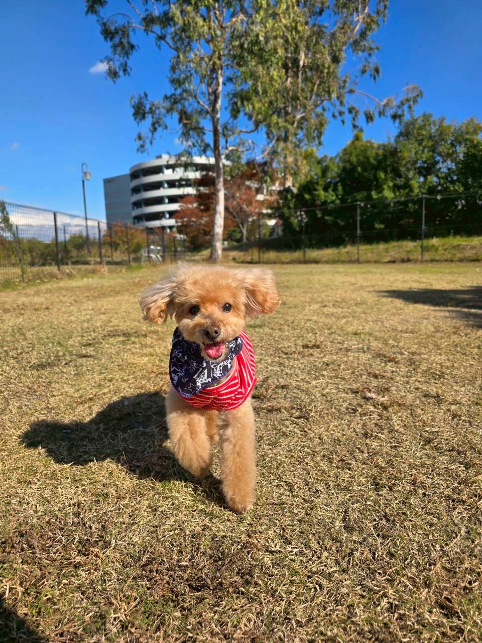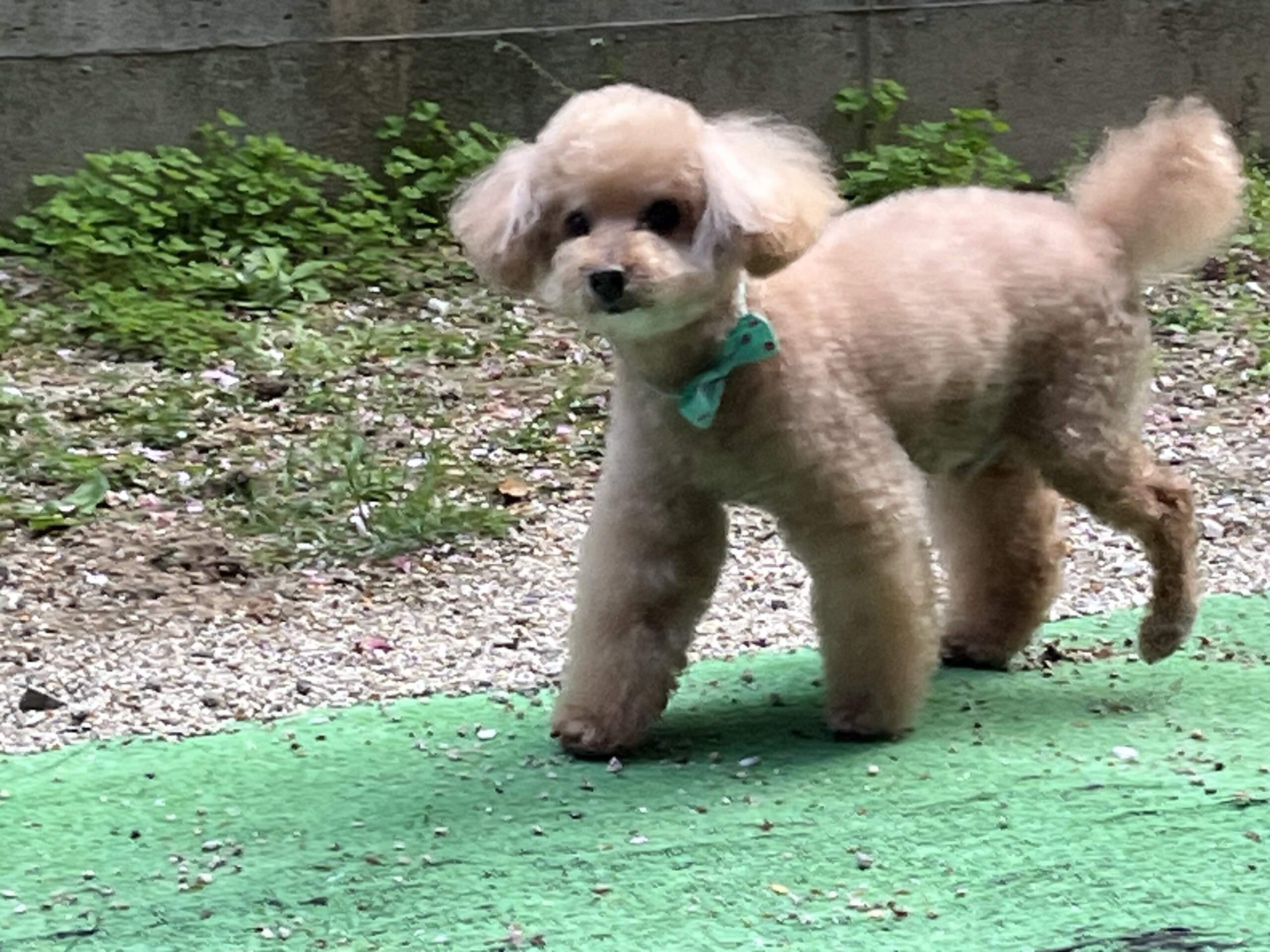 散歩が大好きで、ウサギのようにぴょんぴょん跳ねながら全速力で走りますが、高齢の方にはゆっくりと歩き、一緒に歩く方のテンポに合わせた行動ができ、状況判断のできる頭のよい子だと思います。