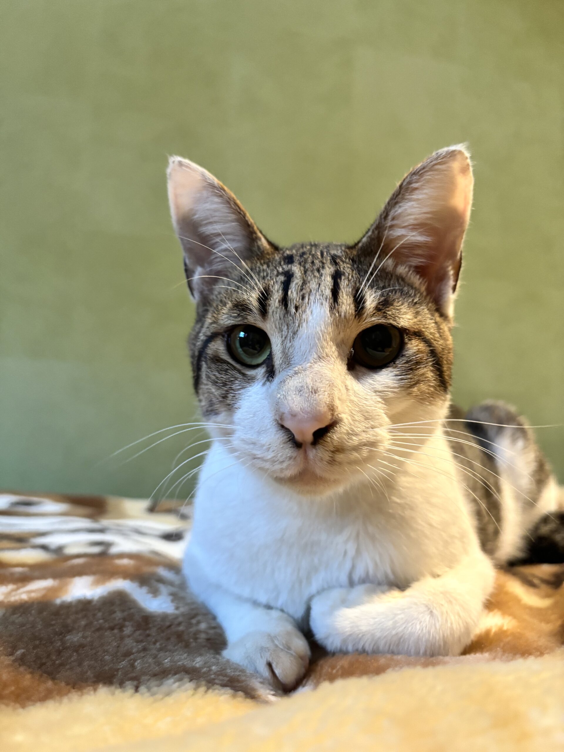 動物病院でもとてもお利口で、洗濯ネットに入りながら診察中にゴロゴロと喉を鳴らしていて、先生もこんな感じの子は珍しい!すごく良い子だと言ってました。
