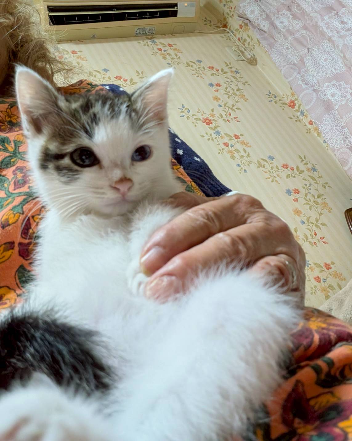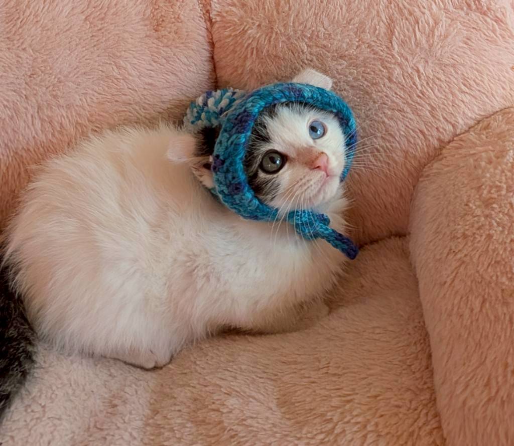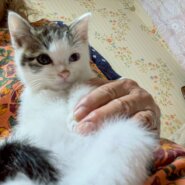 ・アピールポイント:オッドアイが綺麗なな男の子です。玩具に戯れたり、同じ場所で保護した「おもち」と仲良しで一緒に戯れあってます。まだ、少しビビリさんですが抱っこしてるとスヤスヤ眠ったり、チュールを喜んで食べてくれます。