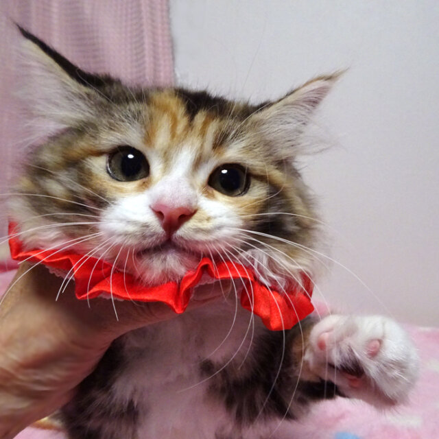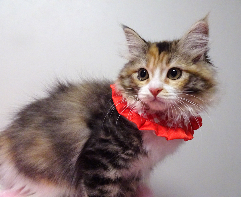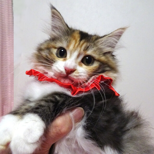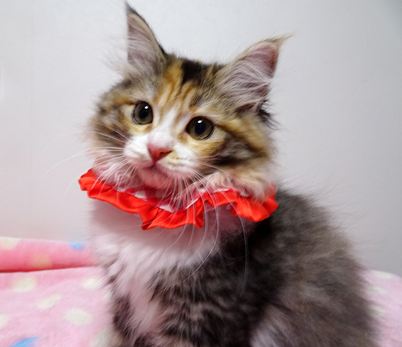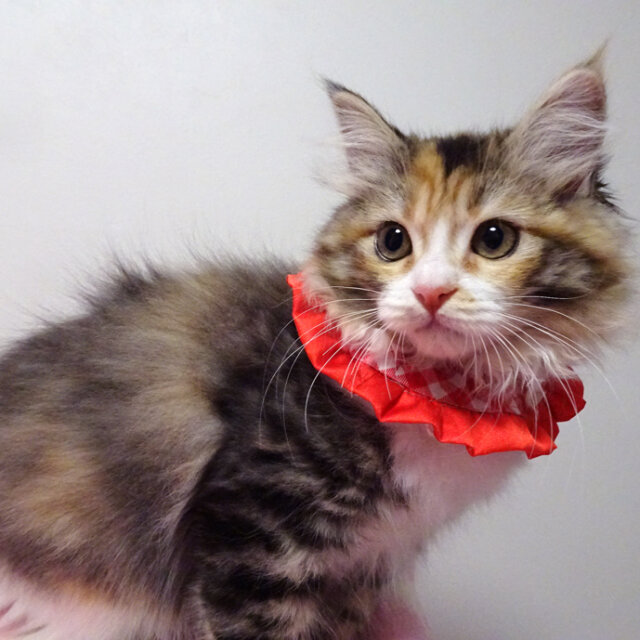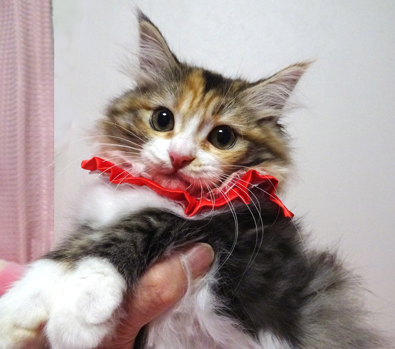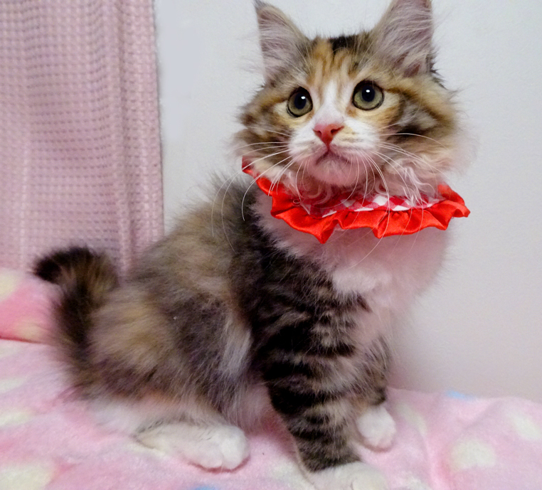 【毛色・柄】 長毛キャリコ(三毛)、長いシッポ