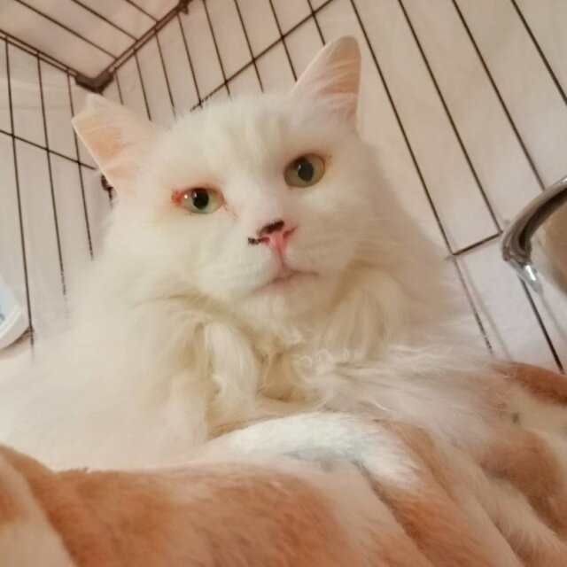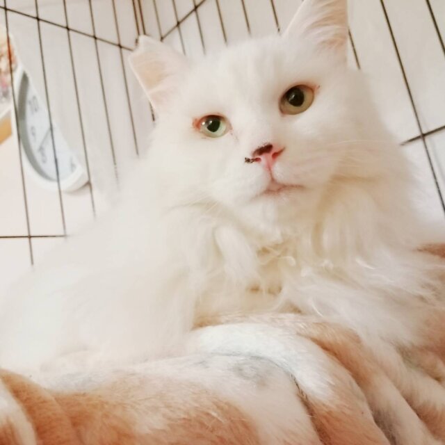 大人しく、撫でられるのが大好きな白長毛の女の子。