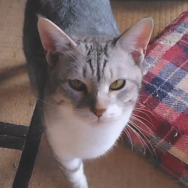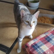 薄いきれいなシロサバ柄で、銀色に見えるのでギンちゃんと呼んでます。
