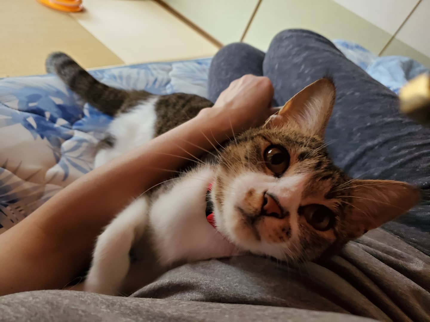初めての人にも抱っこされたりと、とても人慣れしており、身体、肉球の綺麗さから元飼い猫だと思います。