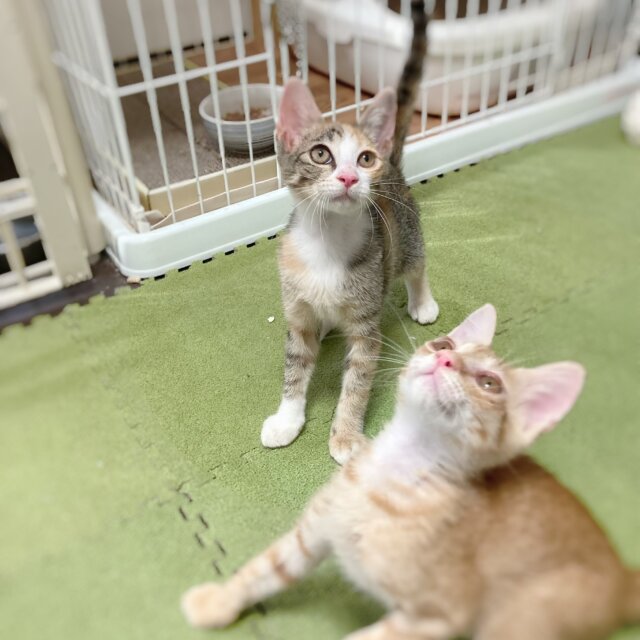 なんでも興味深々、撫でると伏せてゴロンゴロンと横たわります☺️抱っこもできます。キジミケ長しっぽの足長スレンダー美少女天使です😆