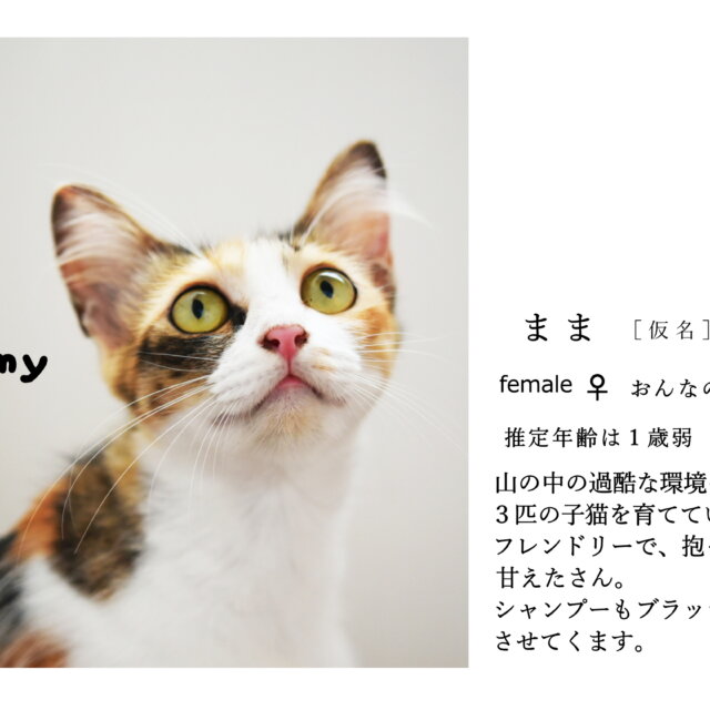「一時保留中です。」山で仔猫を守り抜いたママ猫に幸せを!