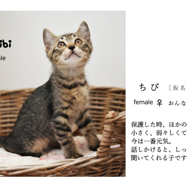 | 年齢/月齢 | 子猫 2ヶ月弱? |