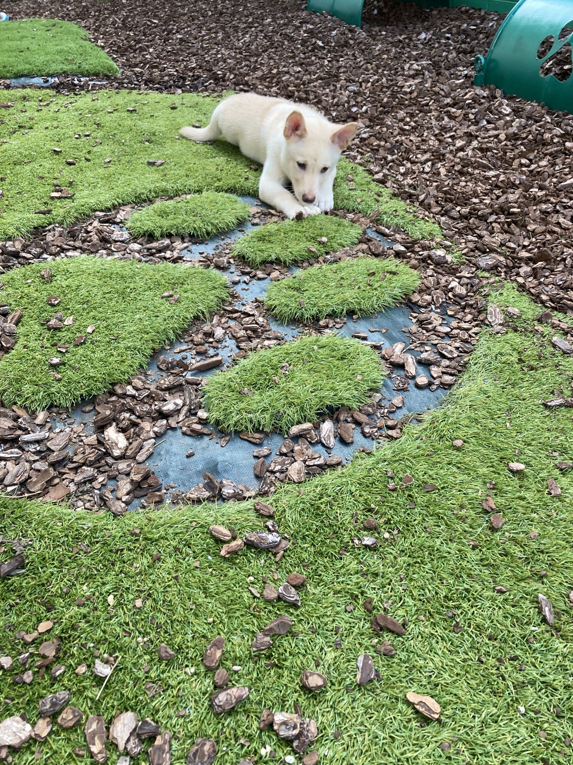 ケージでのお留守番、トイレの練習中です。