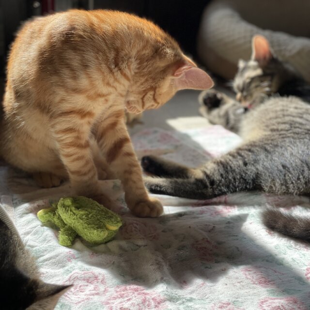 7月下旬ごろから自宅の庭に親子で来るようになり、お盆の最終日に親と兄妹を、翌日にこの子を保護しました。既に2匹の飼い猫がいますので、この子達もみんな幸せになってもらいたいなぁと祈っています。