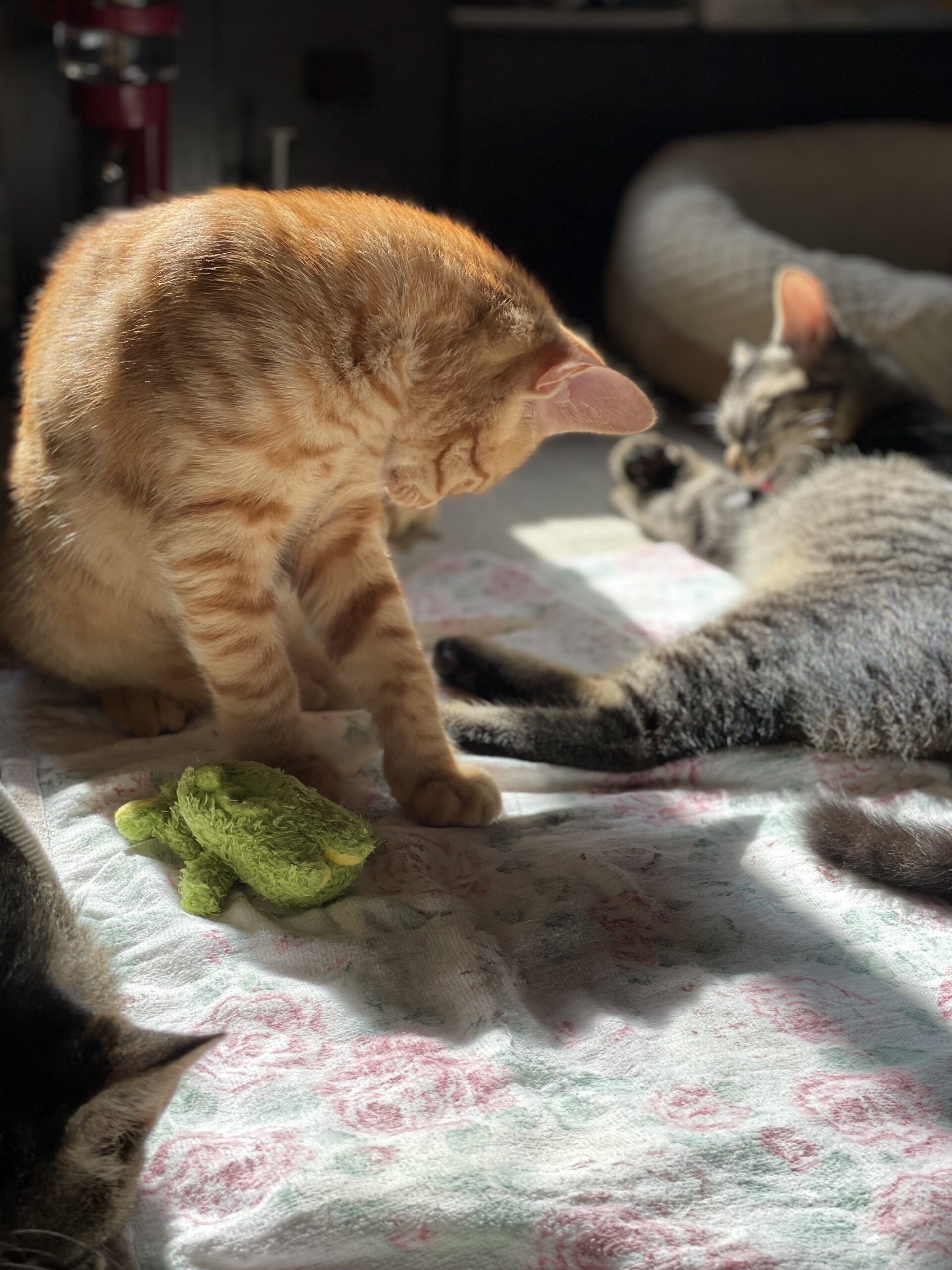 茶トラの男の子です。茶トラ女の子とトラネコ女の子の兄弟です。おとなしくて人見知り。甘えん坊のビビり君ですが、人馴れ訓練中です。出来れば兄妹で引き取っていただければと思いますが、一匹でも。10月に去勢手術予約しています。