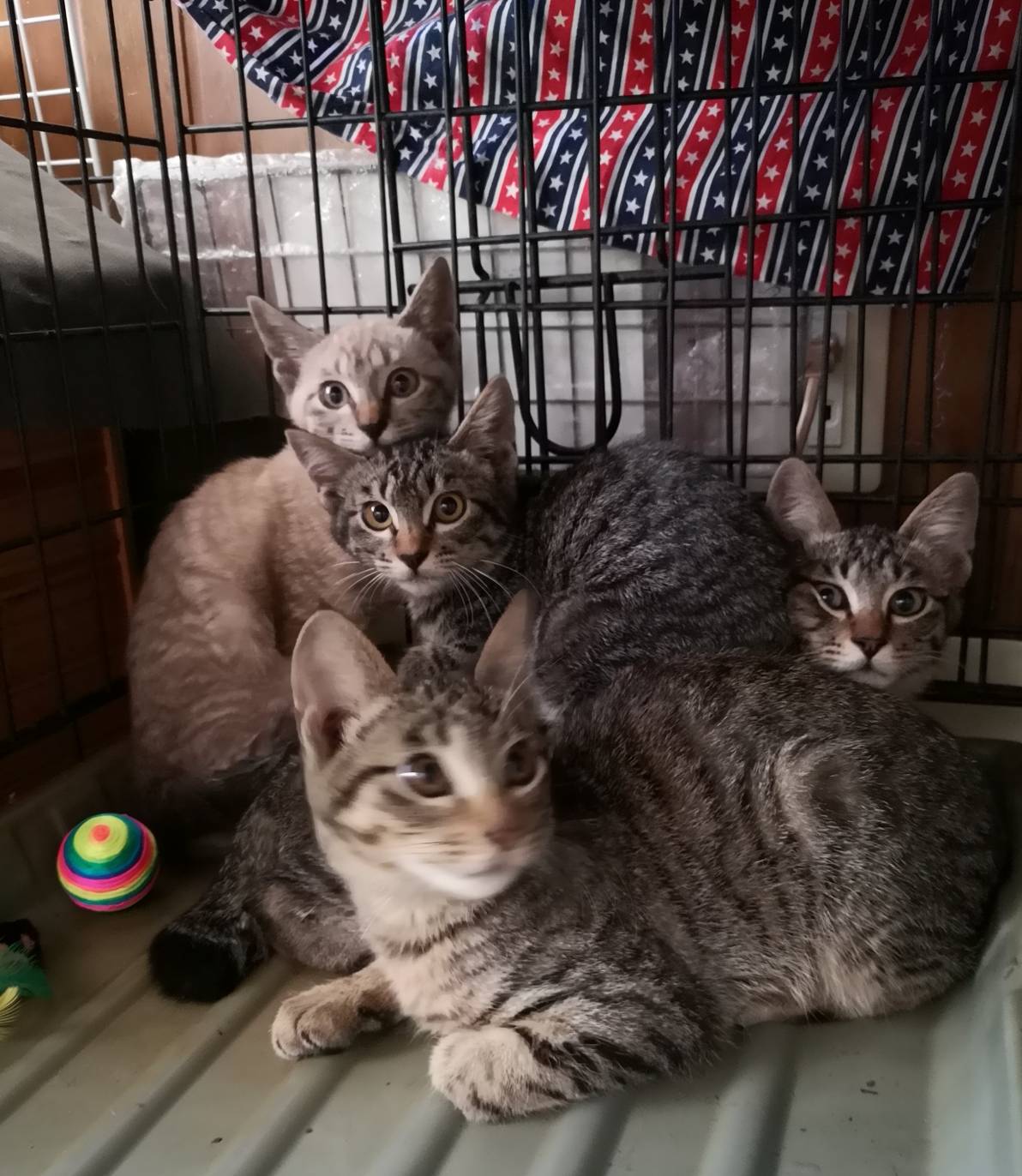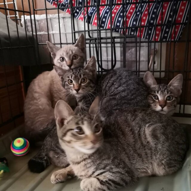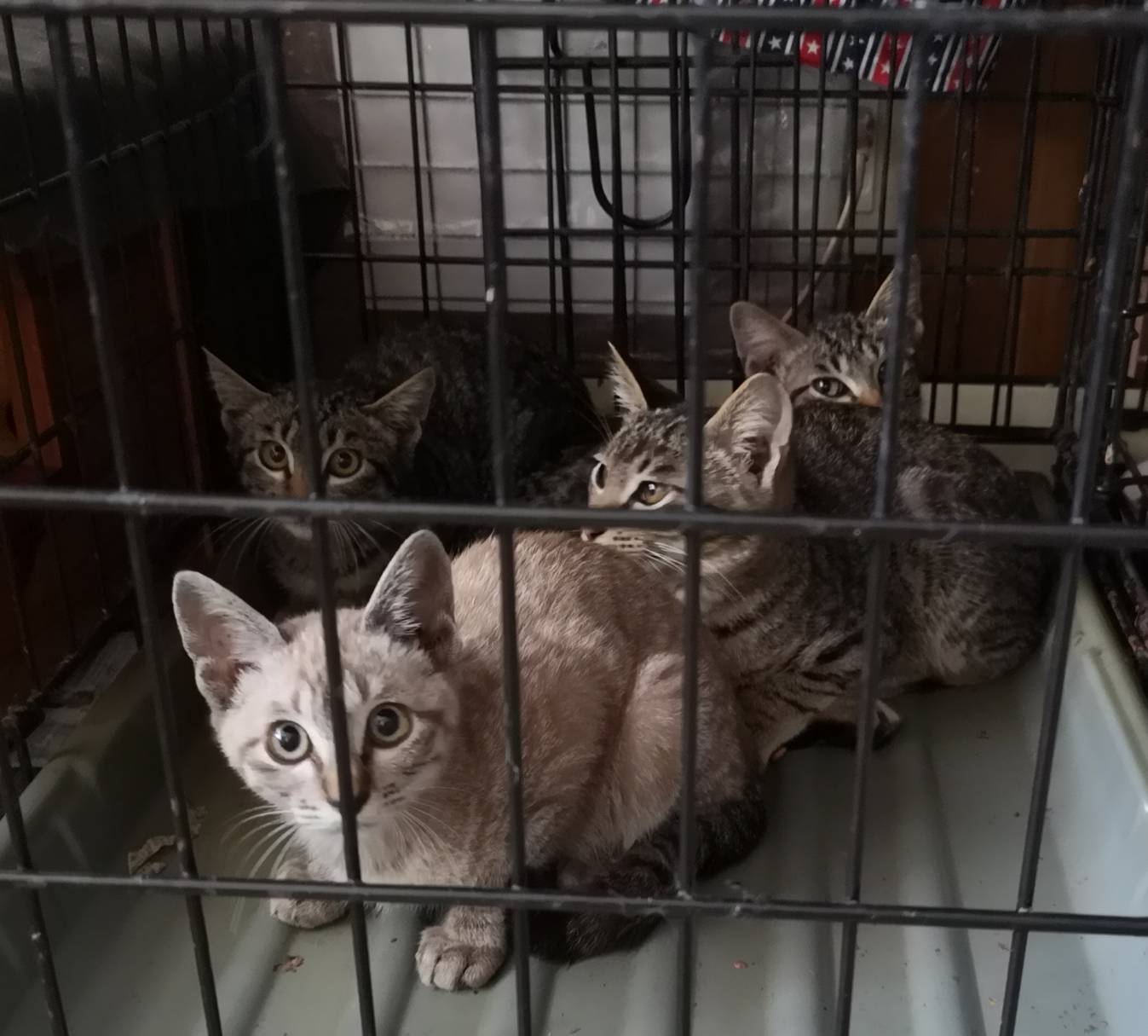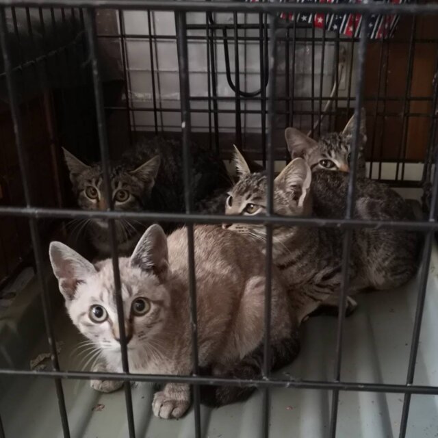 隣町の住居建てこんだ路地で沢山産まれている(8匹)との住民からの連絡で現在までに6匹保護しました。後2匹保護したい(体が小さい子)のですが、空いているケージがなくこれ以上保護できない状況です。 人馴れほぼできた子を、引き取っていただければ、残りの子猫2匹も捕獲できますので、ご協力をお願いします。