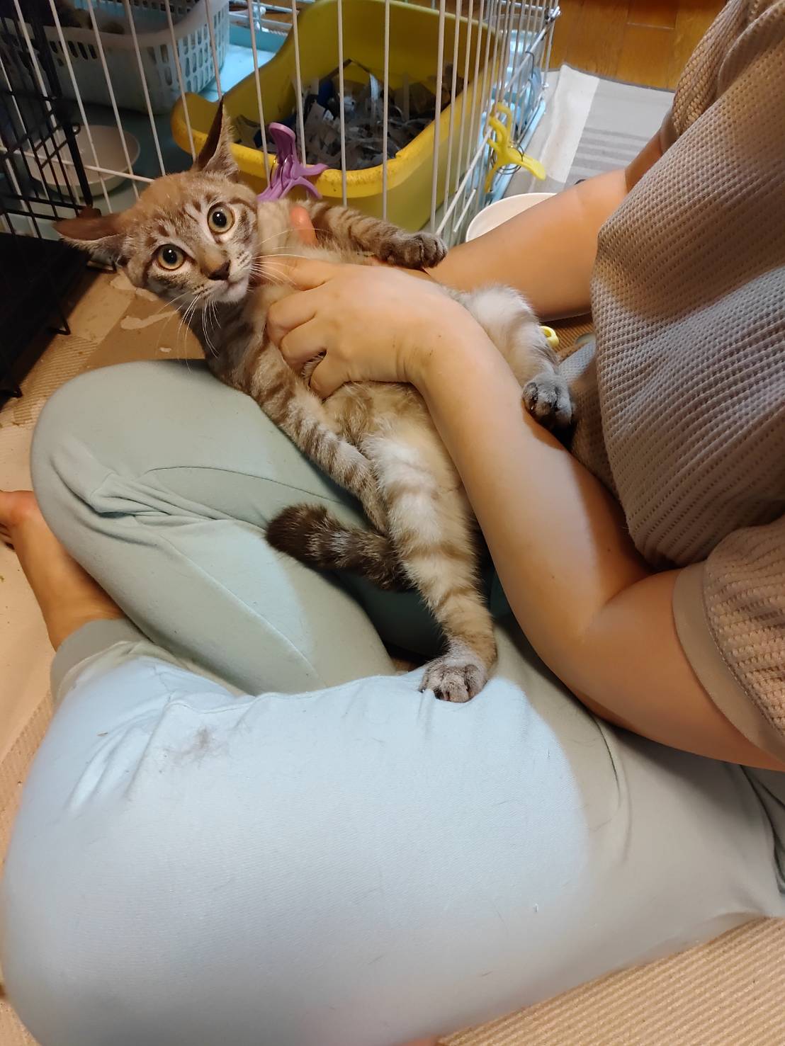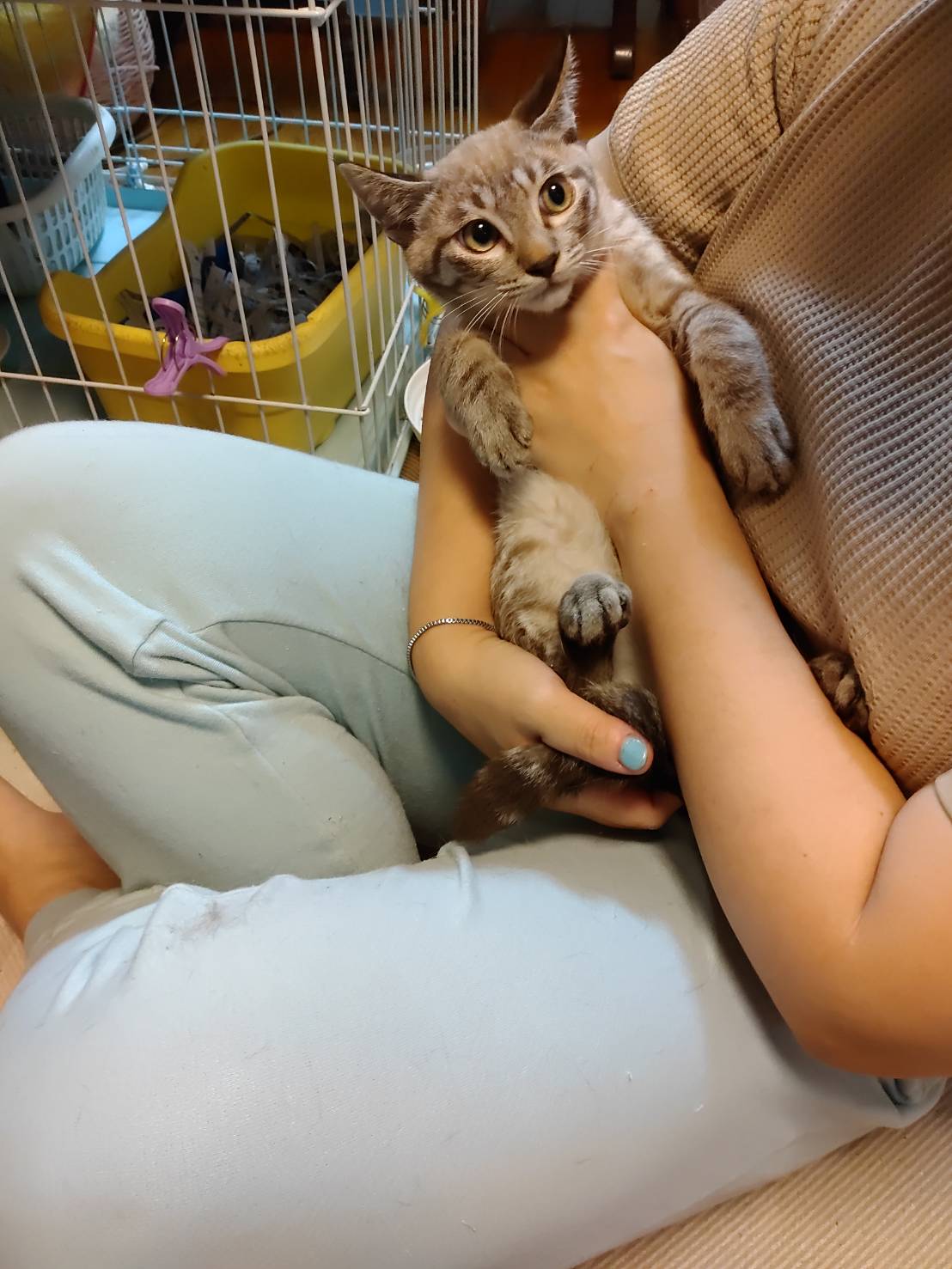 保護した子達は最初は威嚇もあり手もでていましたが、チュールとおもちゃで少しづつ馴らし、現在までに抱っこをはじめ、爪切り、耳掃除や投薬も可能な状況まで慣れました。◆健康状態 食欲旺盛でドライ、ウエット完食