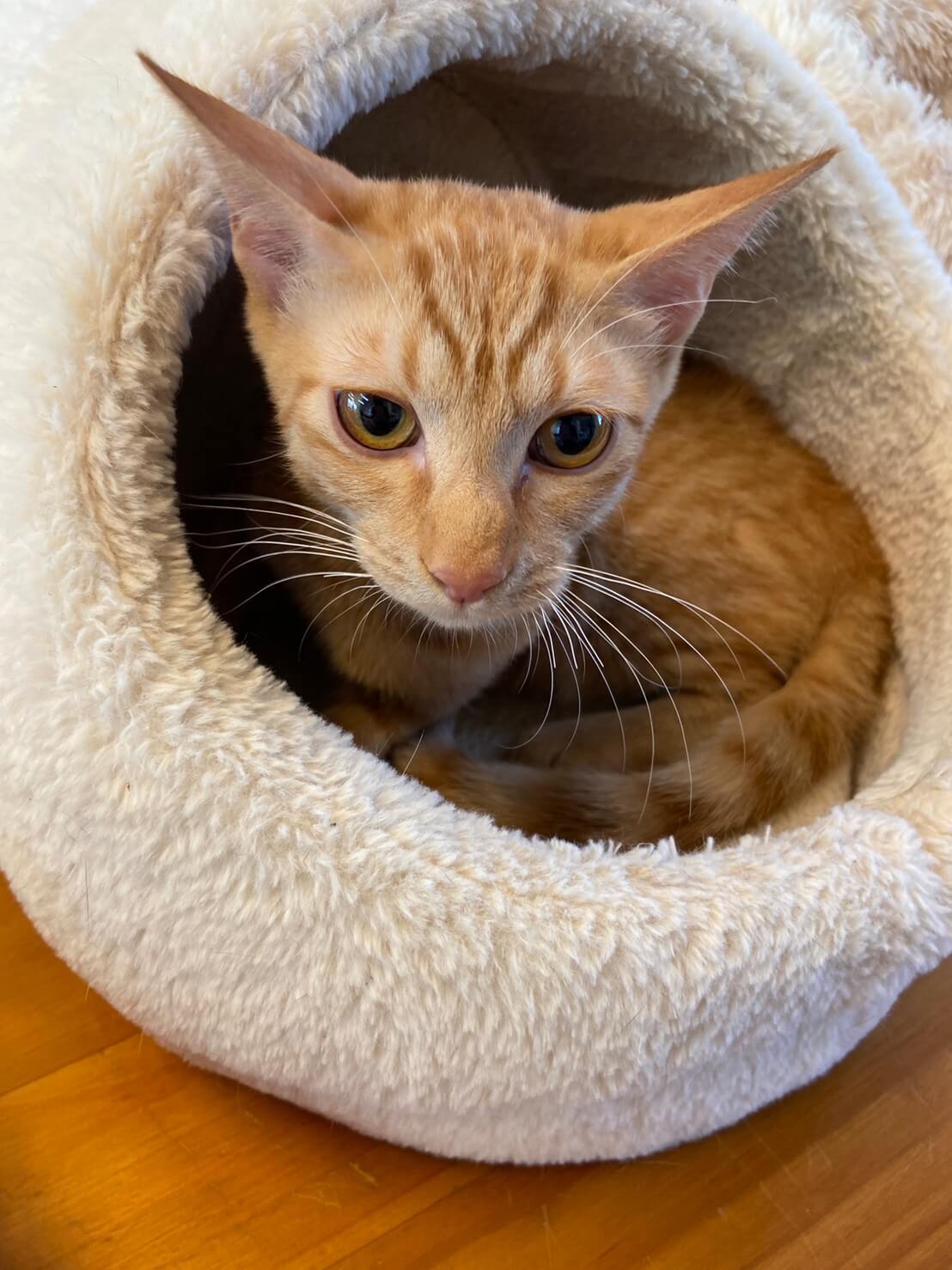 2021年8月に当施設に仲間入りした虎太郎くん。三毛猫花ちゃんと兄妹です。