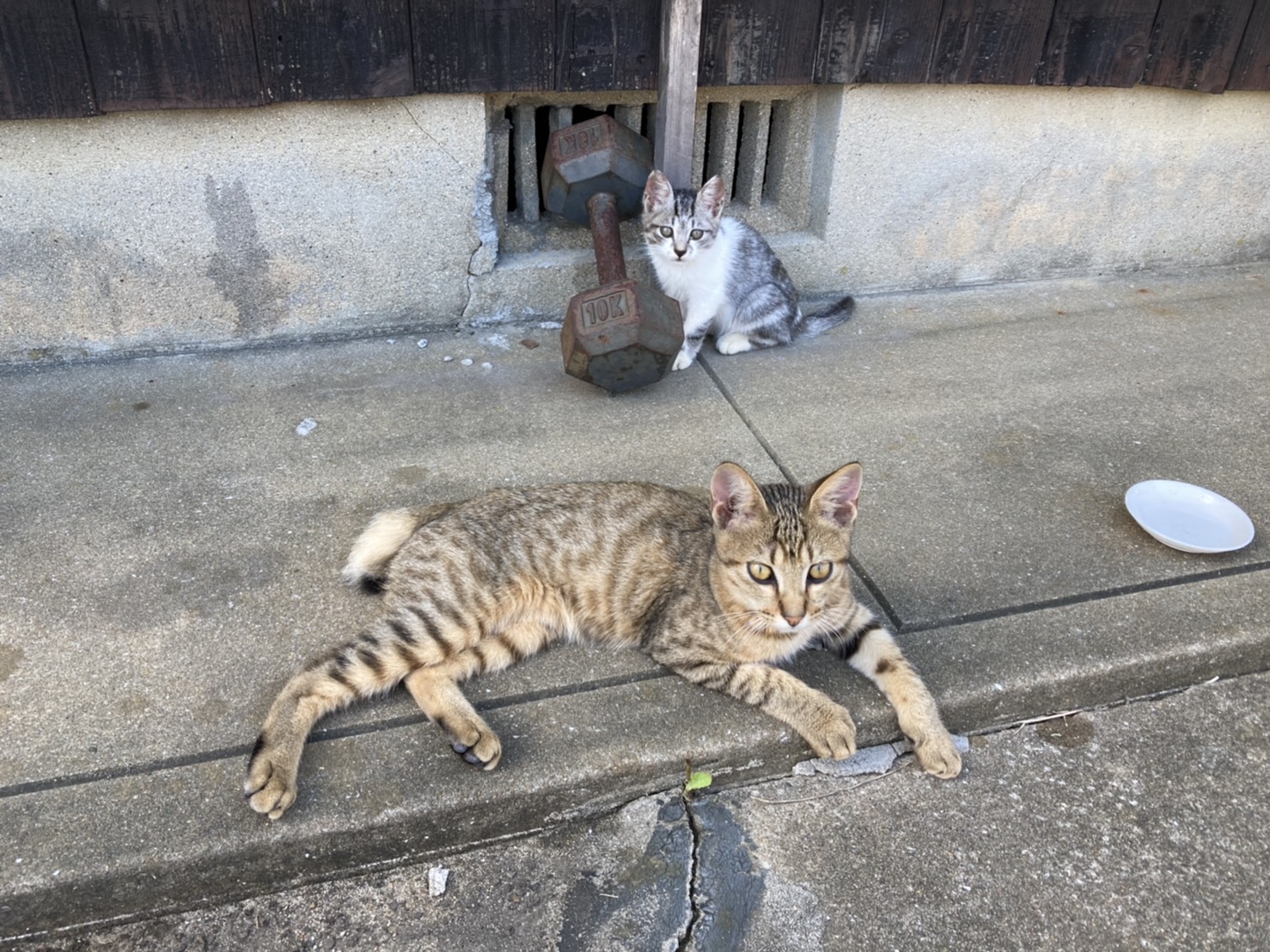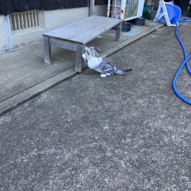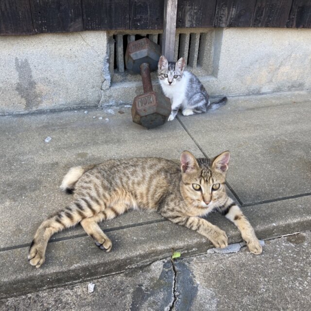 兄弟猫でもないキジ猫(オス)にいつもくっついています。
