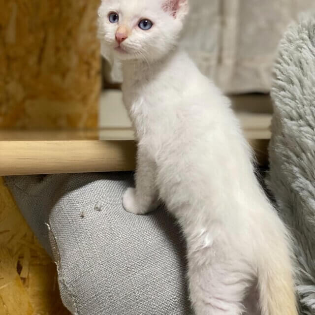 白い毛にお耳と尻尾だけクリーム茶のバンタイプ ブルーアイ