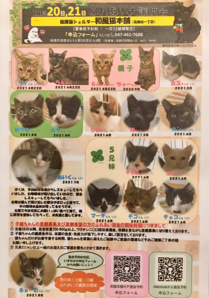 🍀—🍀— 和風猫本舗ふれあい大譲渡会告知 —🍀—🍀