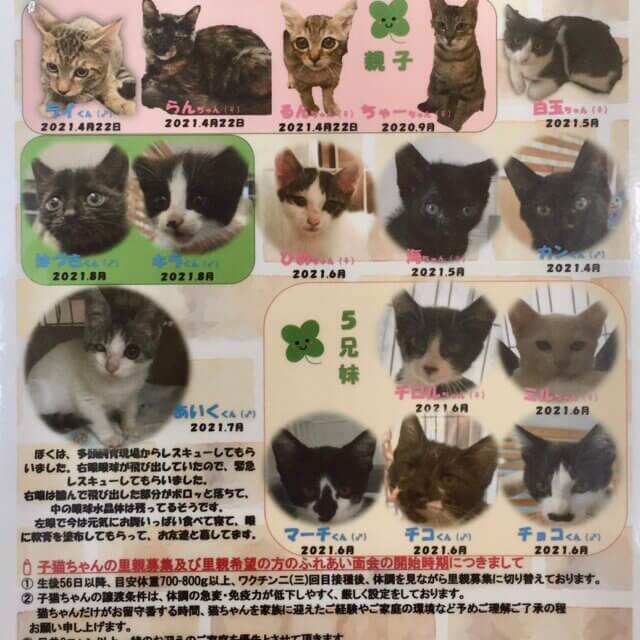 里親様募集中にゃんこをあらかじめご確認いただき、「里親希望者様向けHP」よりご連絡いただきますようお願い致します。