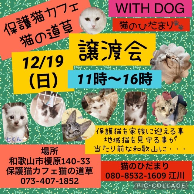 猫の道草&猫のひだまり&NPO法人WITHDOG保護猫の譲渡会