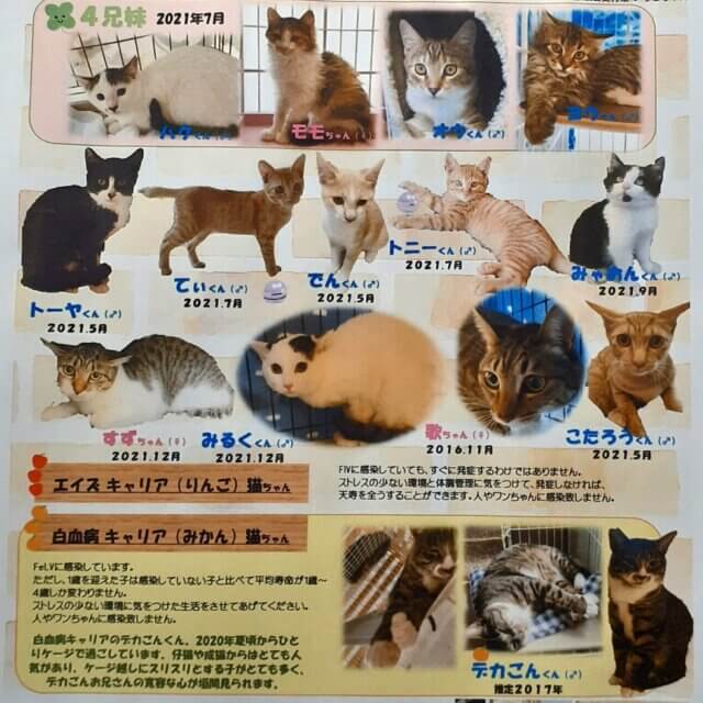 常時50~60匹の里親募集中の保護猫さん達との出会いの場として、