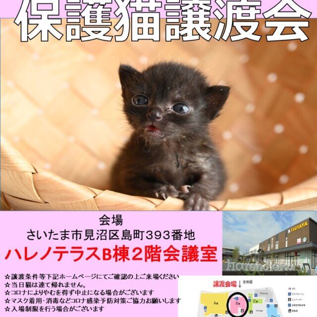 【さいたま市】3/13(日)ハレノテラス保護猫譲渡会