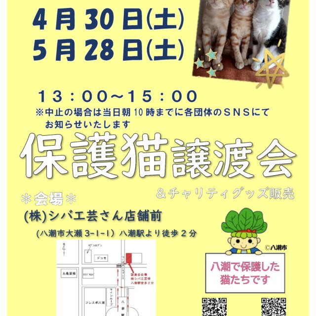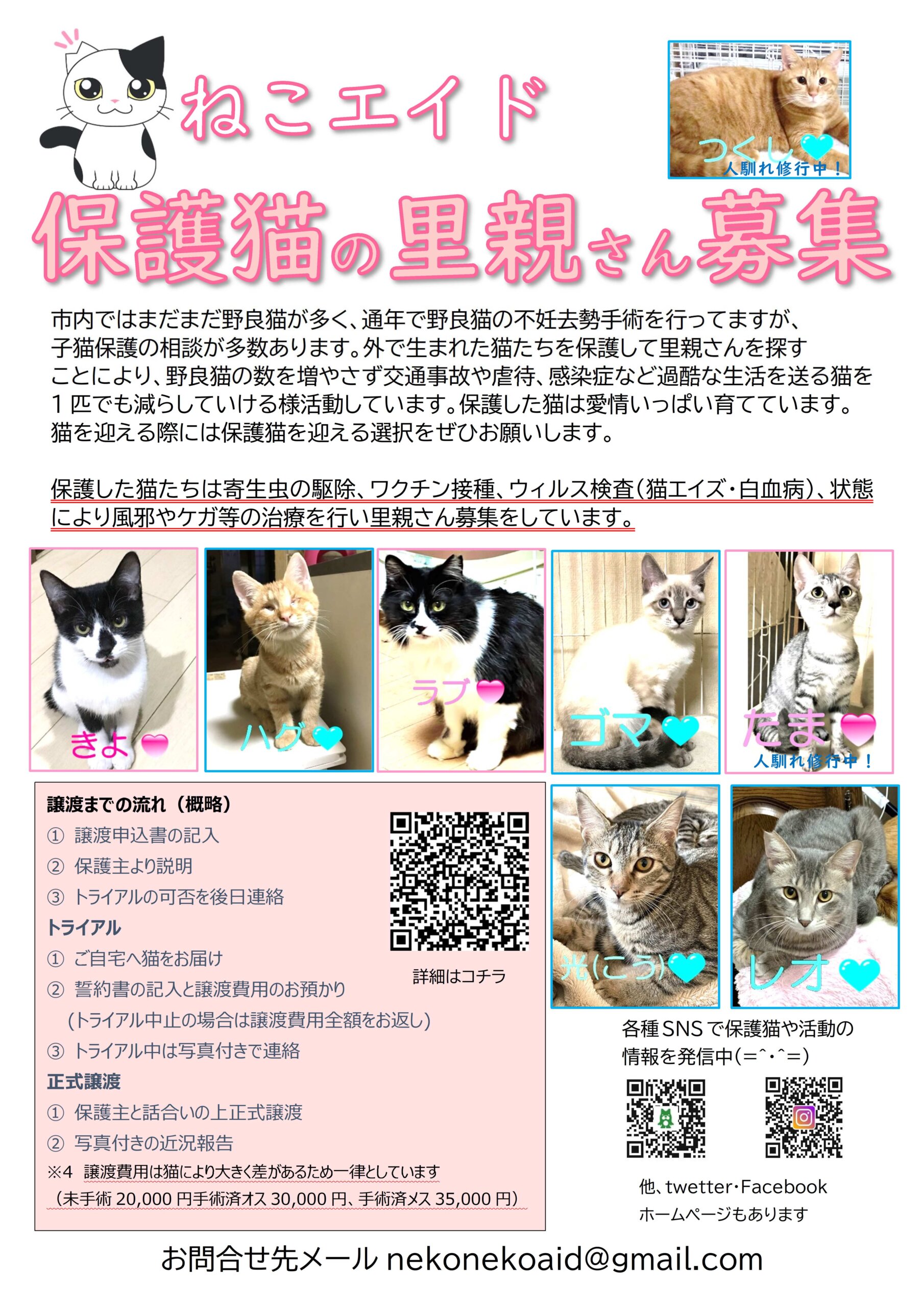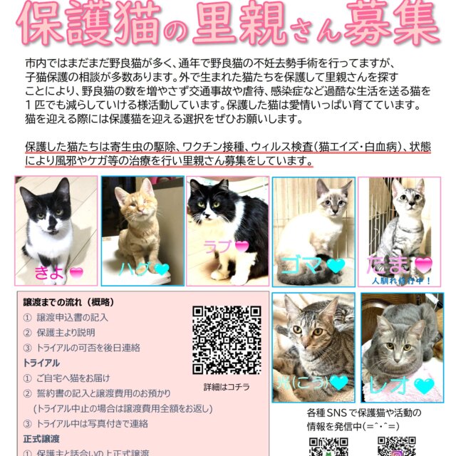 主に八潮市で保護された猫たちの里親になってくれる方を募集してます。