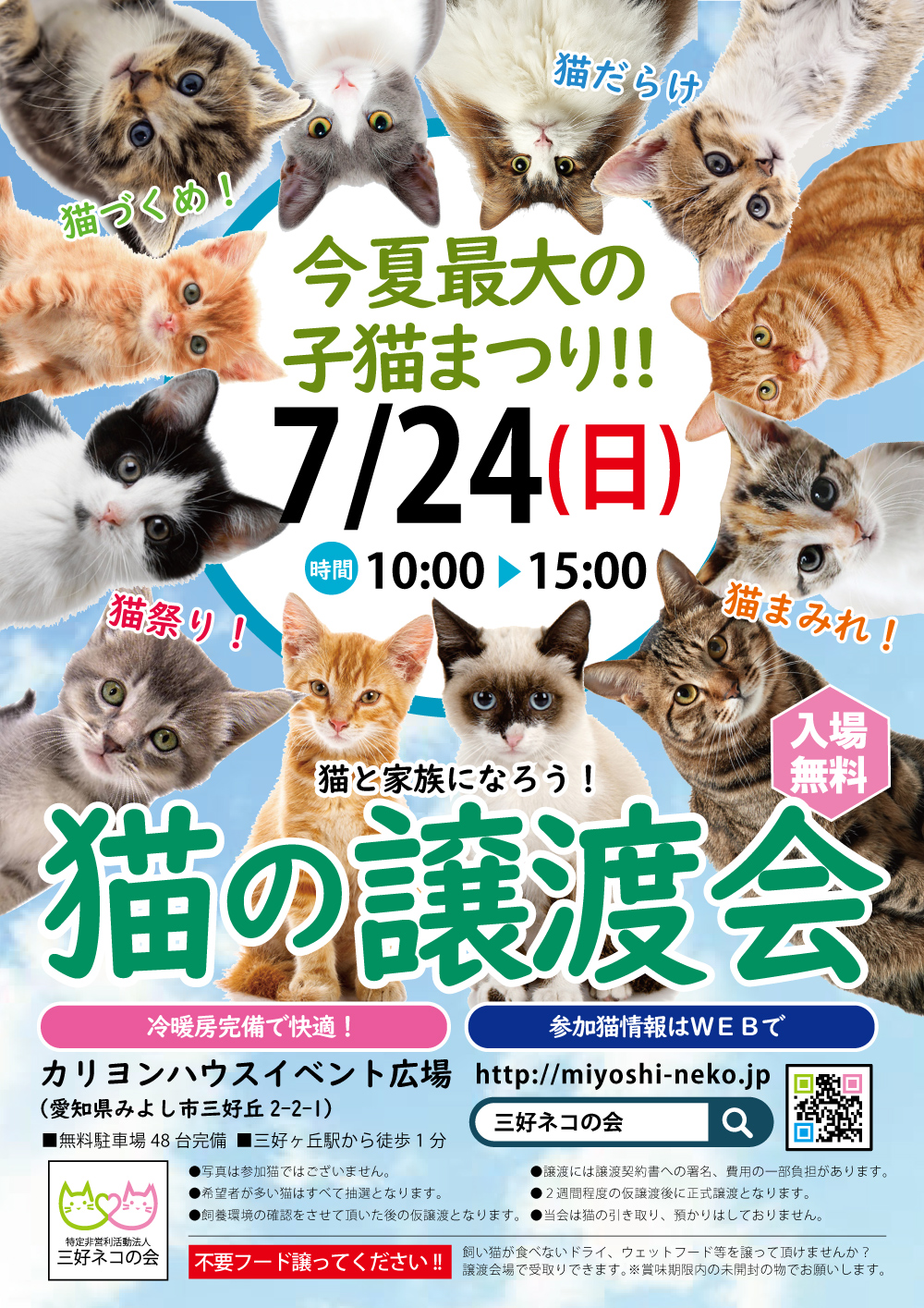 今夏最多30匹!!子猫譲渡会/愛知県みよし市