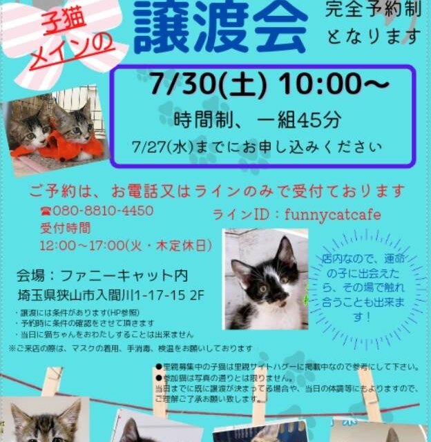 🐈7/30(土) 子猫メイン譲渡会開催🐈