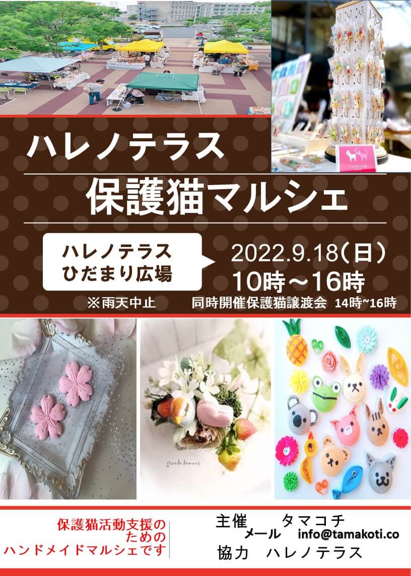 【こねこがいっぱい】9/18(日)ハレノテラス保護猫譲渡会