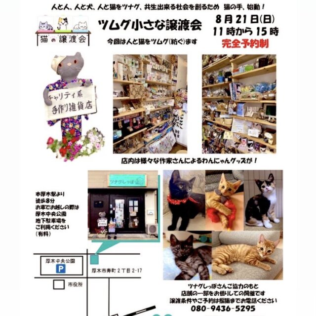 ツムグ小さな譲渡会 募集番号:18790 掲載日:2022/08/11 開催日 2022年8月21日 時間 午前11時〜午後3時 場所 厚木市寿町2丁目2-17 会場名 ツナグしっぽ店舗 内容 生後2〜3ヶ月の子達です。 とても人馴れしていでどの子も 人と遊ぶのが大好きです ずっとの家族さんを探してます 会いに来て下さい。 コロナ対策により時間予約制にしております ご不便をお掛けしますが お電話お待ちしています。 開催日: 2022年8月21日 時間: 午前11時〜午後3時 場所: 厚木市寿町2丁目2-17 会場名: ツナグしっぽ店舗 画像2枚目: 画像3枚目: 画像4枚目: 画像5枚目: スポンサーリンク この譲渡会情報をSNSで広めよう! Twitterでシェア Facebookでシェア はてなブックマーク LINEで教える 投稿者: Warning: Undefined variable $userID in /home/petwa/pochi-tama.net/public_html/wp-content/themes/pet/single-joutokai.php on line 150 fukuneko この投稿者の情報を見る