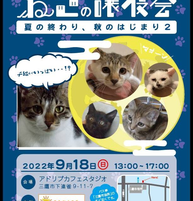 東京都三鷹市の猫譲渡会です 募集番号:20311 掲載日:2022/09/08 開催日 2022/09/18 時間 午後1時〜午後5時 場所 東京都三鷹市下連雀9−11−7 会場名 アドリブカフェスタジオ 内容 東京都三鷹市の譲渡会です。 会場は三鷹市役所前のアドリブカフェスタジオです。 公共交通機関でお越しの方は三鷹市役所前のバス停からお越しください。 また、会場に駐車スペースはありませんので、お車の方は、周辺の有料駐車場をお調べの上、お越しください。 よろしくお願いします。 開催日: 2022/09/18 時間: 午後1時〜午後5時 場所: 東京都三鷹市下連雀9−11−7 会場名: アドリブカフェスタジオ 画像2枚目: 画像3枚目: 画像4枚目: 画像5枚目: スポンサーリンク この譲渡会情報をSNSで広めよう! Twitterでシェア Facebookでシェア はてなブックマーク LINEで教える 投稿者: Warning: Undefined variable $userID in /home/petwa/pochi-tama.net/public_html/wp-content/themes/pet/single-joutokai.php on line 150 みたか123 この投稿者の情報を見る