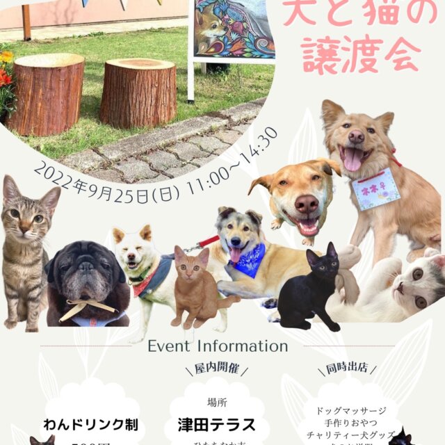 ※当日の犬猫の体調や、里親さんの決定により不参加となるわんにゃんがいる可能性もございます。ご理解のほどをお願いいたします。