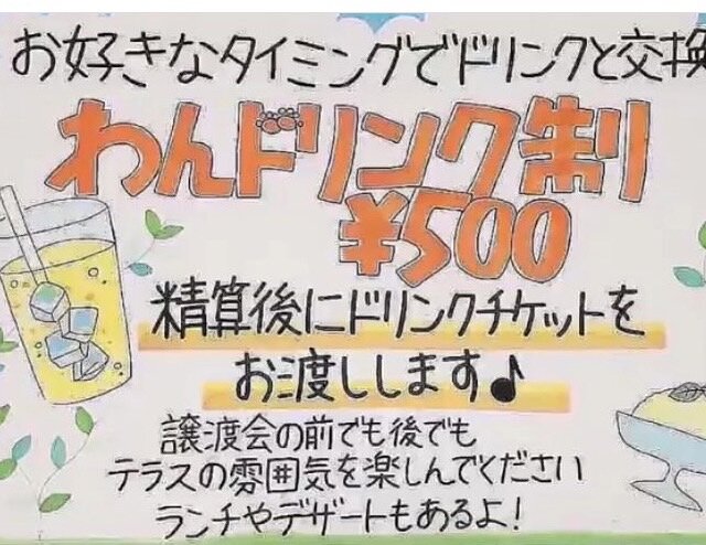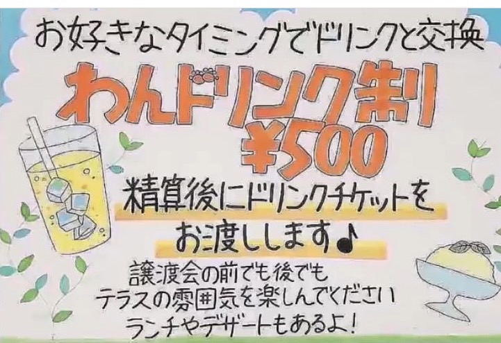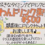 入口にて精算後、チケットをお渡し致しますので、お好きなタイミングでドリンクをご注文下さい。
