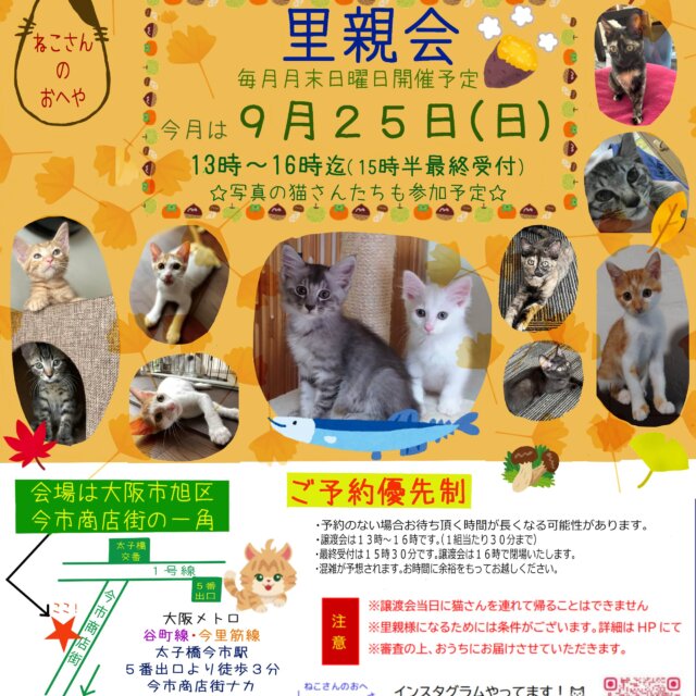 15時半最終受付となります。お目当ての子が決まってるかたは面談のご予約をお願いいたします。