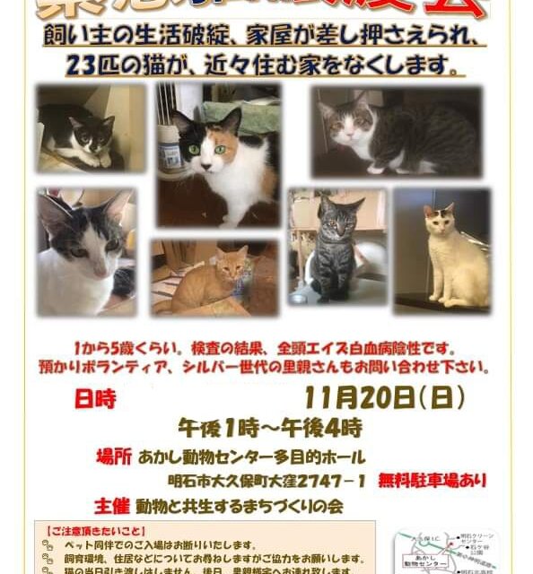命をつないでいただきますようお願いします。12月以降の譲渡会は、「動物と共生するまちづくりの会」フェイスブックをご覧ください