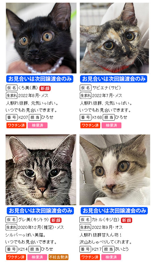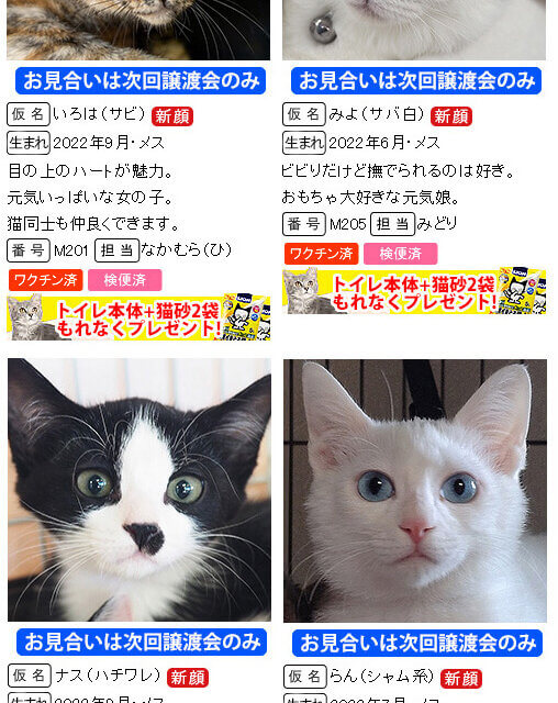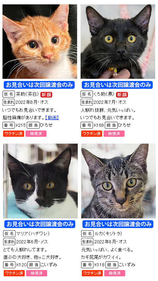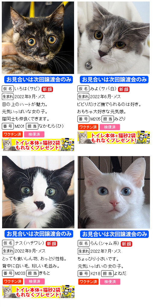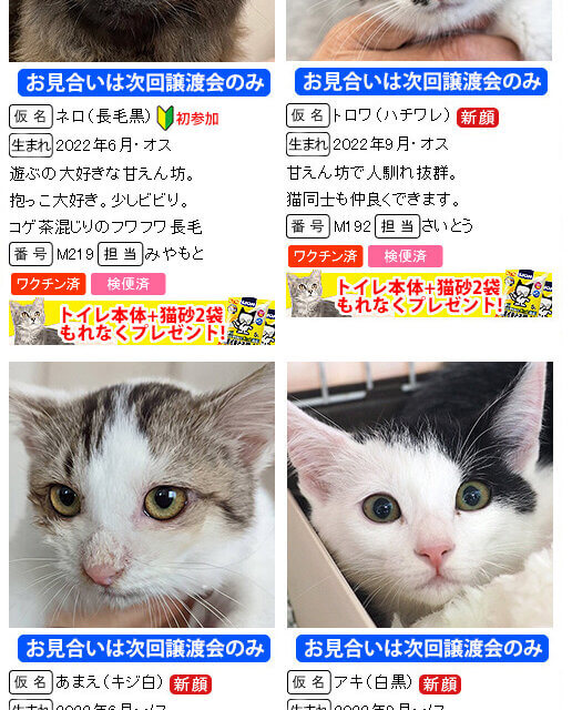 ※掲載していない子猫も参加します。